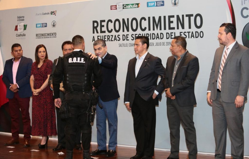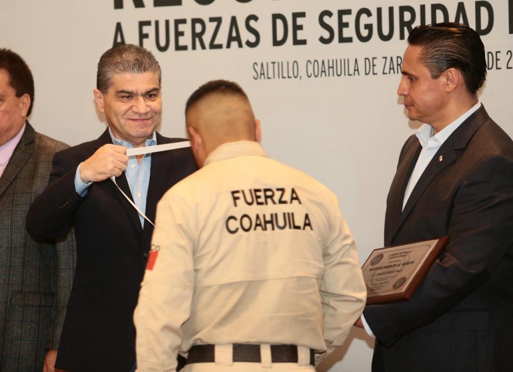 En el Salón Municipalidades, del Palacio de Gobierno, realizó la entrega de 53 reconocimientos a elementos de las Fuerzas de Seguridad del Estado, de la Policía Municipal de Saltillo, la Fiscalía General del Estado y a la Secretaría de Seguridad Pública.