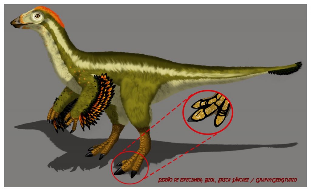 También se localizó una garra de ornitomimido inusualmente grande, que podría haber pertenecido a un individuo de aproximadamente 6 metros de largo.