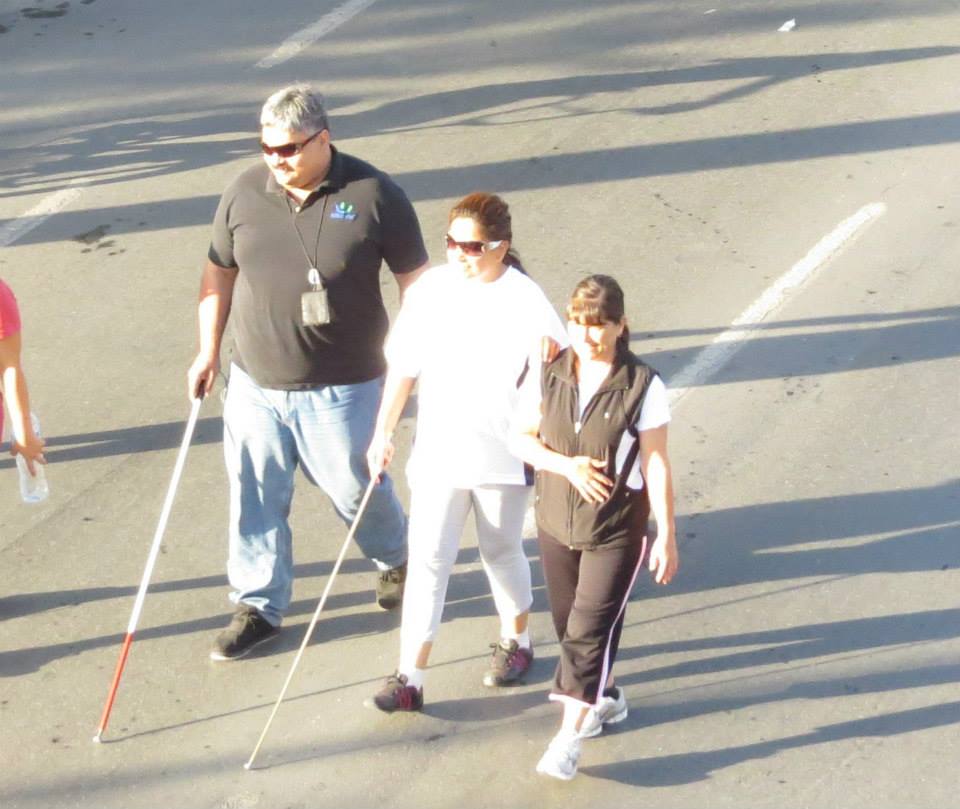 Comentó que, en esta actividad, los participantes están acompañados por gente capacitada de la asociación que les ayudará a desplazarse de manera segura, evitando obstáculos y a hacer uso de los dispositivos que existen para apoyar a las personas invidentes como es la línea tacto podal y los semáforos auditivos.