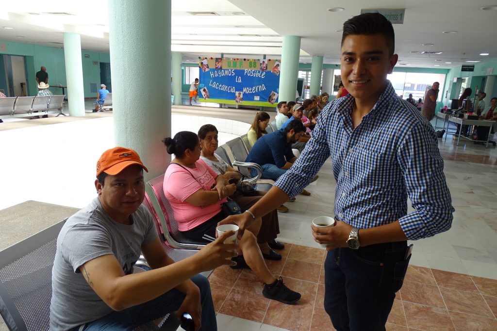 El grupo encabezado por Francisco Aguirre Martínez visitó las clínicas número 3 y 88 del Instituto Mexicano del Seguro Social en Ramos Arizpe, en donde regalaron café caliente y un pequeño refrigerio a los que esperaban su turno para consulta o a familiares que esperaban visitar a sus enfermos.