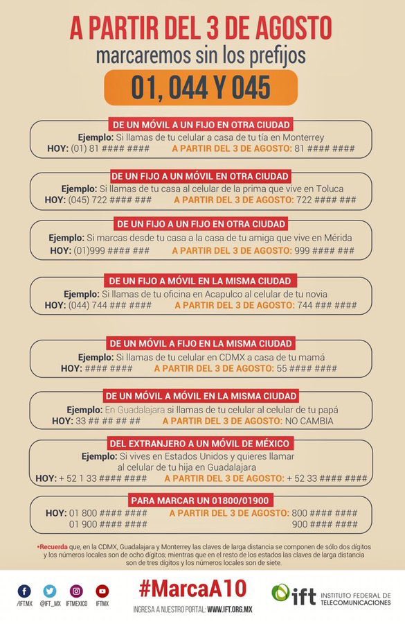 -Para llamadas de larga distancia ya no será necesario poner 01; se marcará el número directo de 10 dígitos