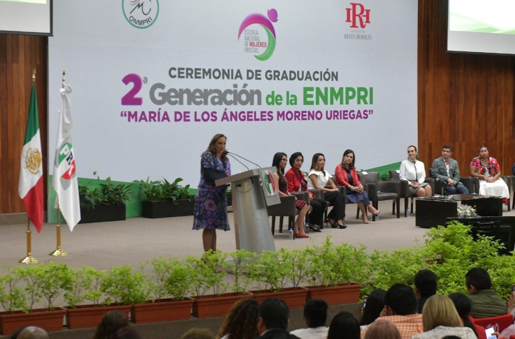 La Segunda Generación de la Escuela Nacional de Mujeres Priistas, “María de los Ángeles Moreno”, representa un paso significativo en la consolidación de esta institución partidaria, así como en las tareas de transformación y edificación del Partido Revolucionario Institucional que queremos subrayó, por su parte, Hilda Flores Escalera, presidenta del ONMPRI, durante la clausura de los trabajos.