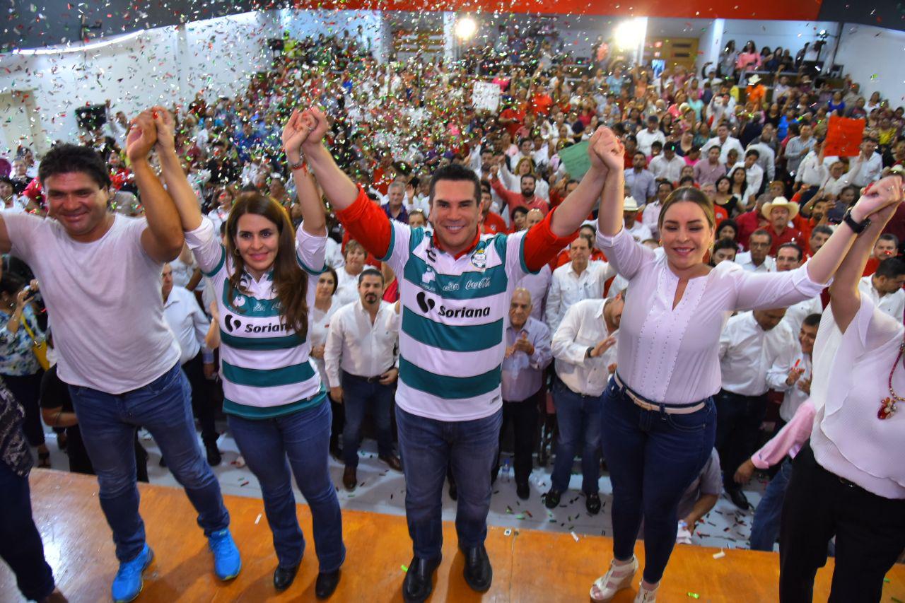 Reunidos con la base, estructuras y organizaciones priistas de esta región del Centro-Norte de México, así como dirigentes estatales y municipales del partido, y ataviados los dos candidatos con la playera del equipo de futbol Santos Laguna, sostuvo que “los priistas sabemos ganar, sabemos tener resultados adversos, pero lo que más sabemos los priistas, es levantarnos, ponernos de pie y volver a ganar”.