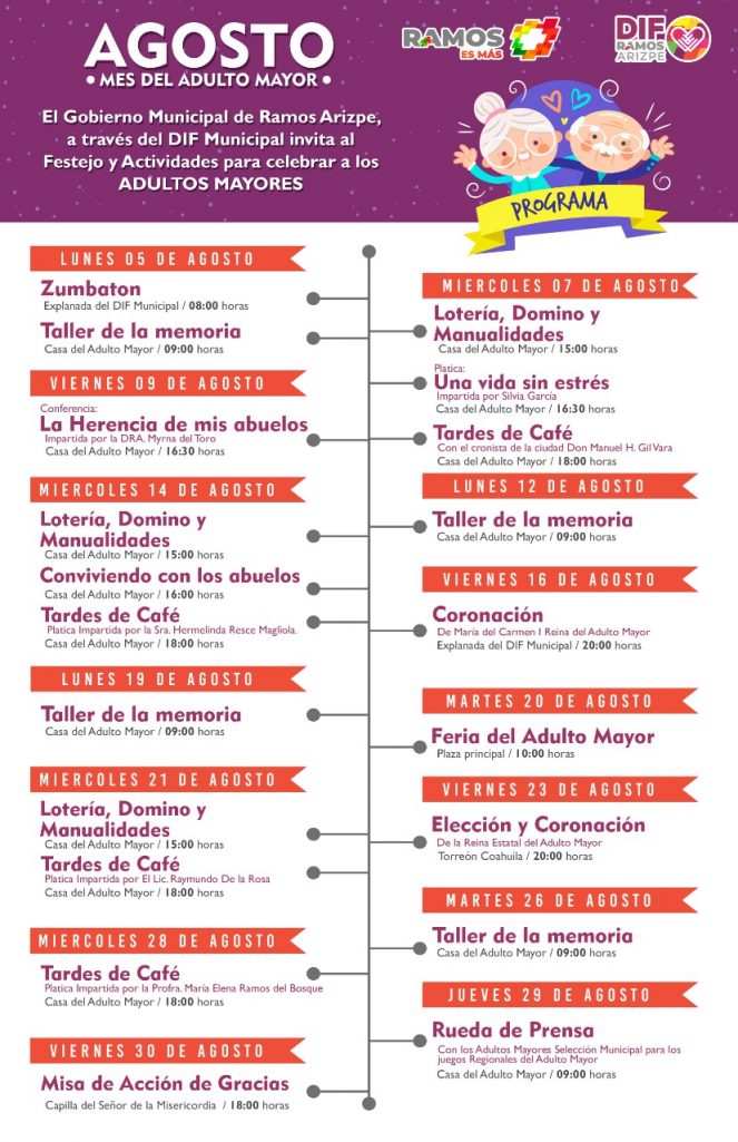 En el marco del mes del adulto mayor, el gobierno municipal de Ramos Arizpe, a través del DIF Municipal, estará llevando a cabo distintas actividades para beneficio y festejo de los adultos mayores.