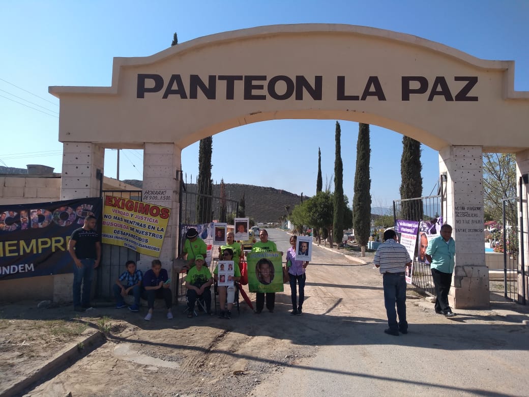 Acompañada por otros padres solidarios del organismo Fuerzas Unidas por Nuestros Desaparecidos en Coahuila y en México, Lorena realizó un plantón en la entrada del panteón para tratar de hacer presión, pues destacó que se ha dado a conocer públicamente que ha habido exhumaciones de cuerpos que no han sido identificados, mientras que el de su hijo, que está plenamente localizado no haya podido sacarse.