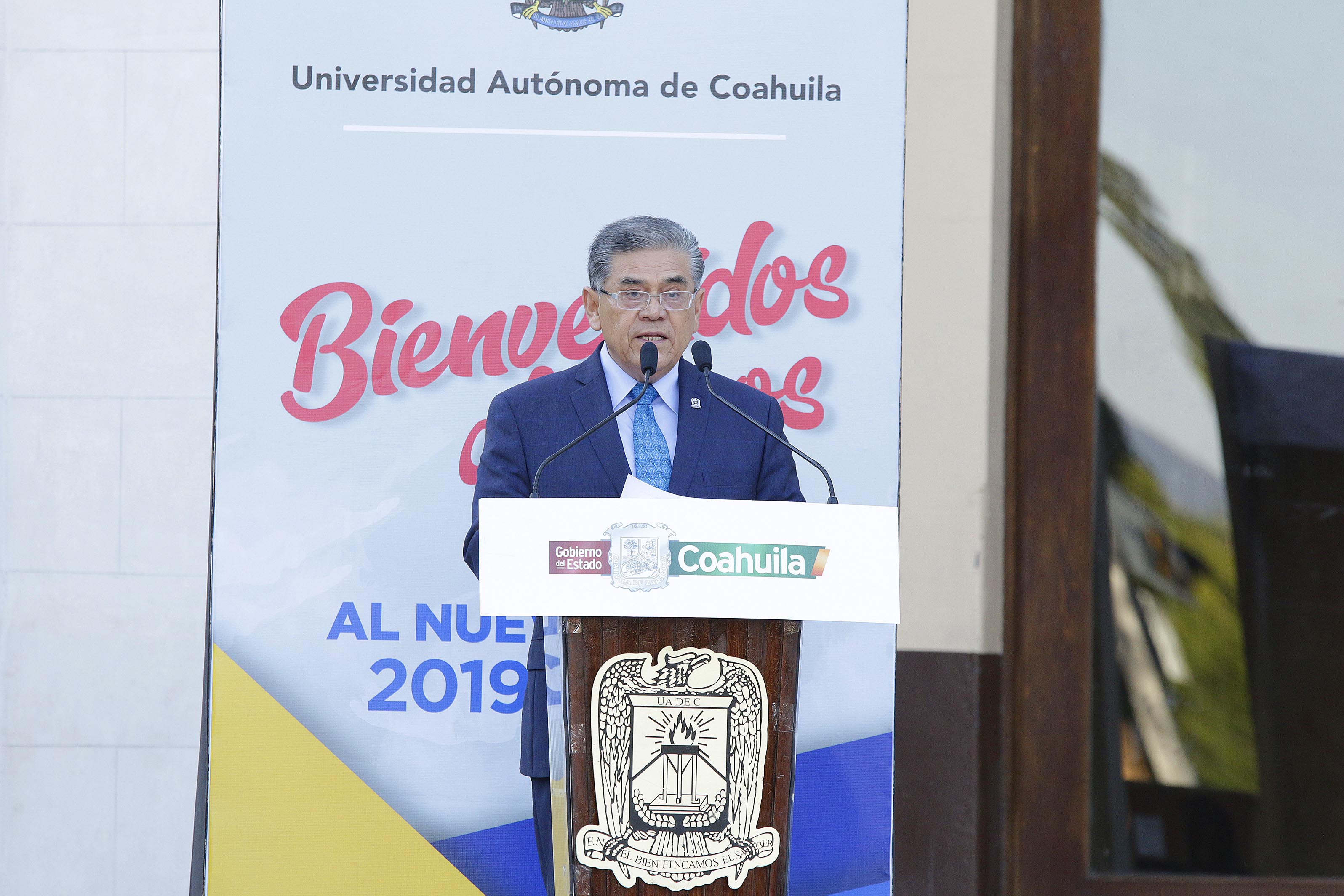 Por su parte, el rector, Salvador Hernández Vélez, felicitó a los alumnos de nuevo ingreso por lograr entrar a la UA de C y recalcó que para la máxima casa de estudios es un privilegio recibirlos y les sugirió ser curiosos, emprendedores e innovadores.