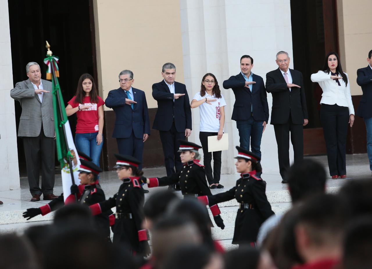 “Reafirmo mi compromiso con la comunidad universitaria”, mencionó el gobernador Miguel Ángel Riquelme Solís durante la ceremonia cívica en la que se dio arranque al Ciclo Escolar 2019-2020 en la Universidad Autónoma de Coahuila (UA de C), evento en el que acompañó al rector Jesús Salvador Hernández Vélez.