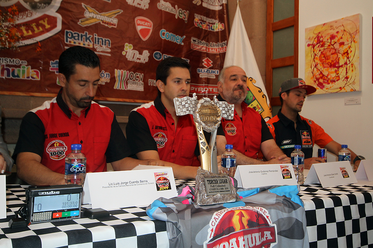 El Coahuila 1000 Desert Rally, bajo la organización de la Cámara Nacional de Comercio (Canaco) de Torreón, en coordinación con la de Saltillo y la Secretaría de Turismo del Gobierno Estado de Coahuila. Además, cuenta con el apoyo del Ayuntamiento de Saltillo, Ayuntamiento de Torreón, CF Moto, Rhino Linings y Electrolit.