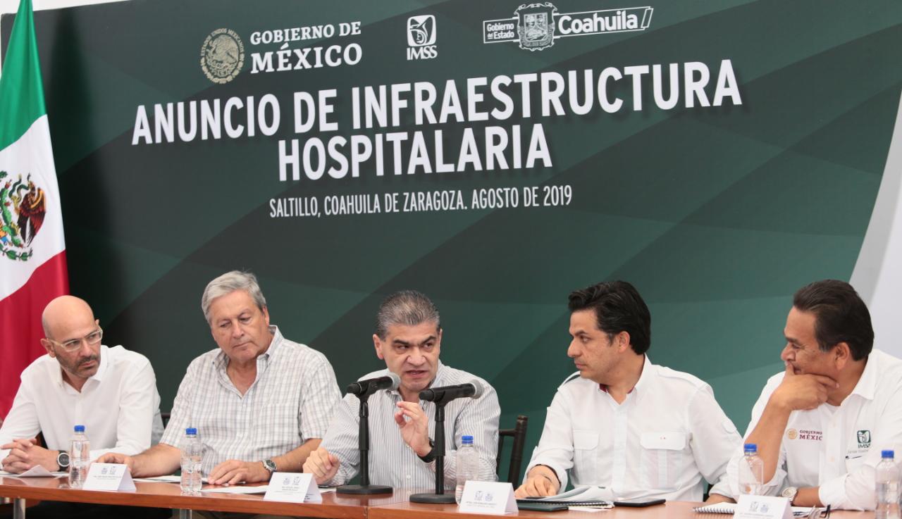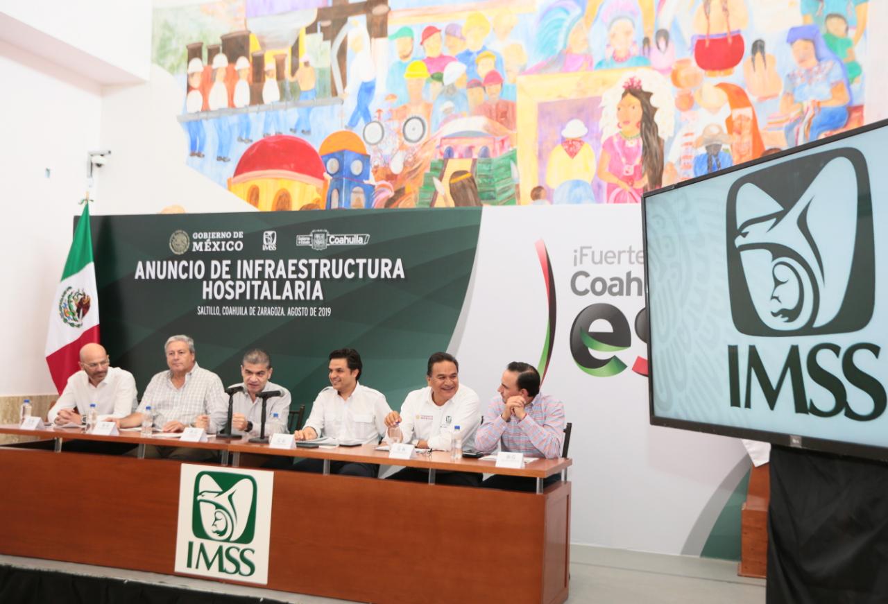 El Director General del Instituto Mexicano del Seguro Social (IMSS), Zoé Alejandro Robledo Aburto, anunció una inversión para Coahuila en infraestructura hospitalaria de 8 mil 360 millones de pesos, que —por su parte dijo el gobernador Miguel Riquelme— ganó el Estado al luchar fuertemente por la garantía y seguridad de los trabajadores, lo que le vale ser el primer lugar nacional en formalidad laboral.