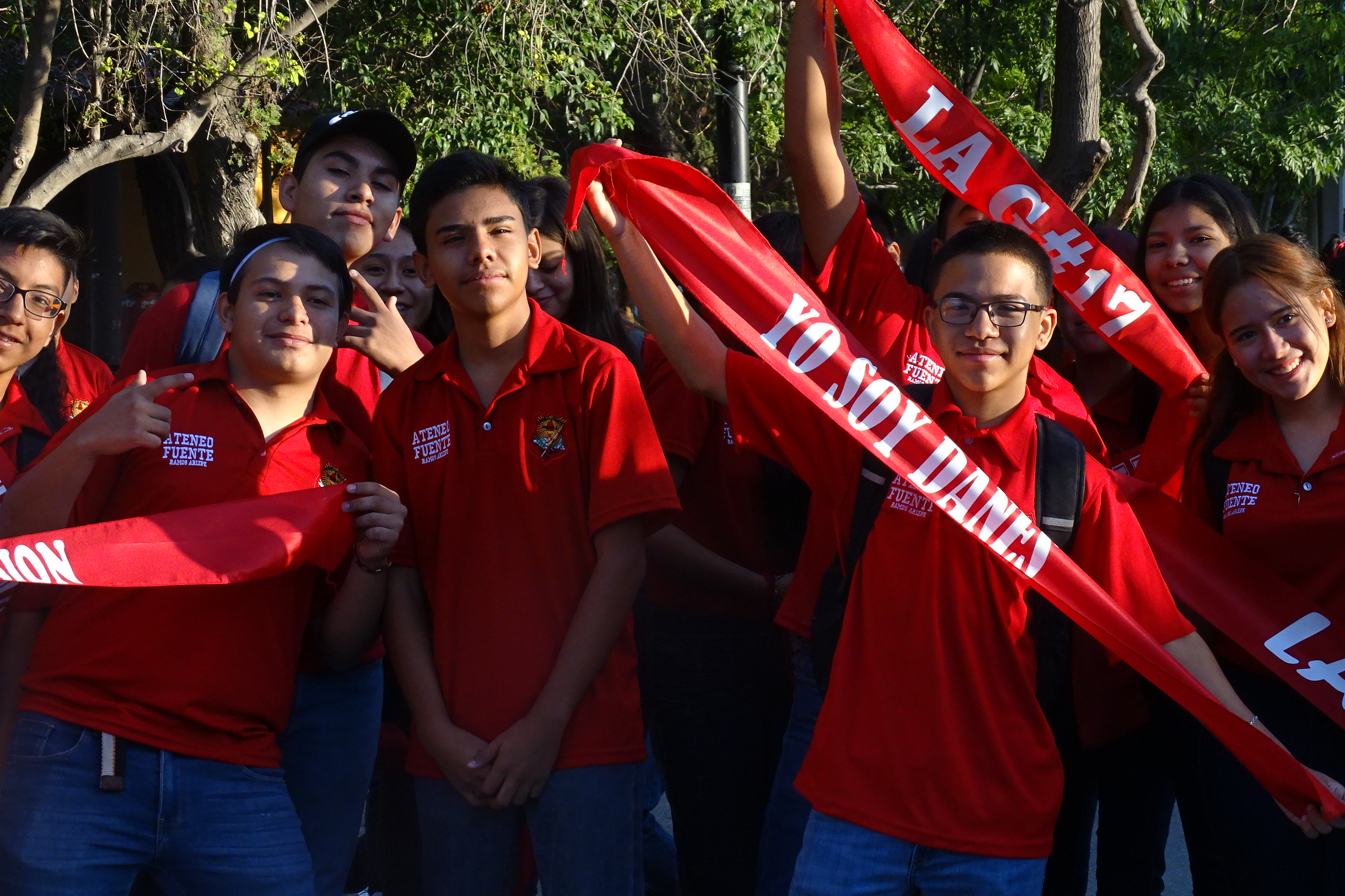 Partiendo desde el águila de esta emblemática plaza pública, los más de 300 estudiantes comenzaron el contingente encabezado por los docentes de la institución. Con cantos y porras caminaron por las calles celebrando el ser “daneses”. Por su parte Hazel Israel Santos Rodríguez, coordinador del plantel señaló en entrevista que este desfile se realiza año con año y en ésta ocasión es la catorceava vez que se lleva a cabo.