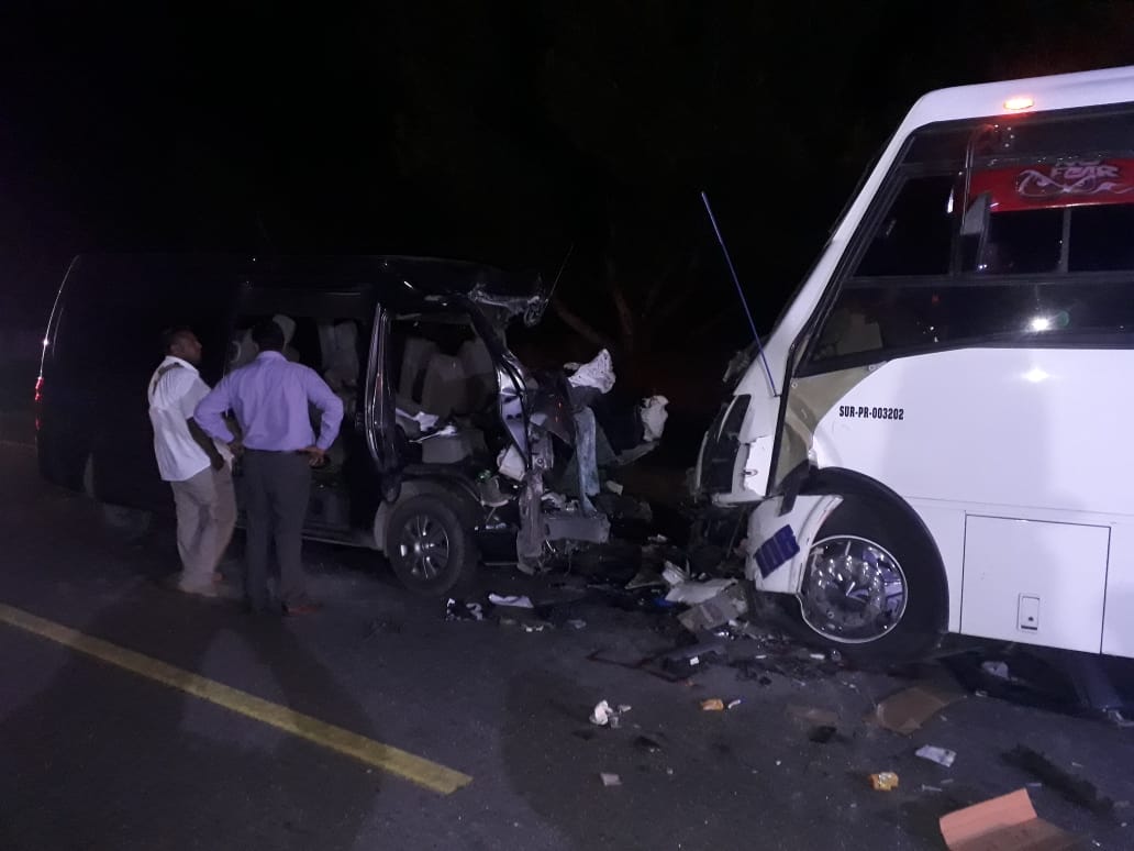 El operador de la empresa CVG transitaba vacío con dirección al sur de la vía federal cuando al llegar al kilómetro 343 una camioneta tipo Van propiedad de la empresa Lain que transportaba a trabajadores de Mexicana Logistics invadió carril y entonces chocaron de frente.