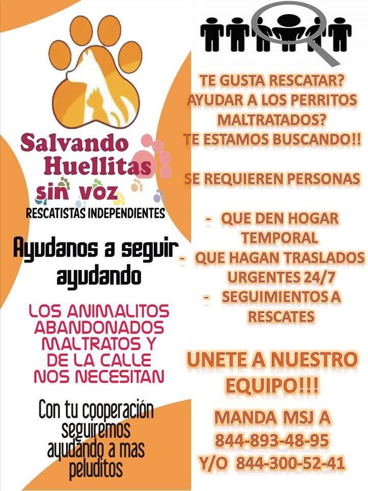 La campaña de Rescatistas Independientes «Salvando Huellitas sin Voz», destinada a salvar perros en situación de calle que hayan sufrido algún tipo de accidente o padezcan alguna enfermedad para apoyarles con su rehabilitación, invita a la comunidad en general a sumarse a sus filas para sumar mayores esfuerzos en favor de esta actividad.