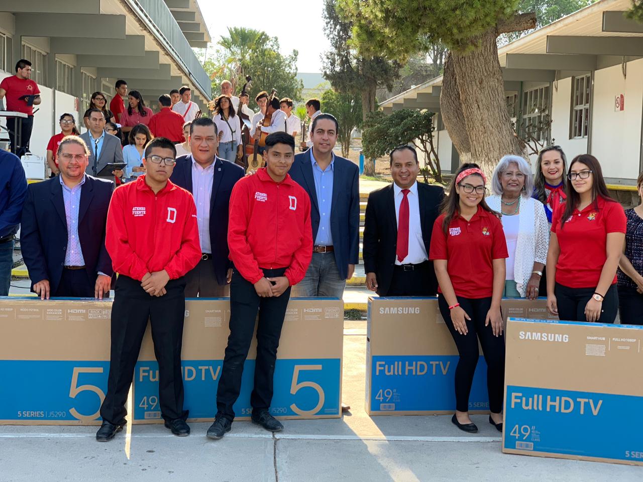 El Ateneo Fuente Ramos Arizpe se benefició con 4 televisiones de 48 pulgadas, para los 360 de alumnos, pues en dos años duplicaron el número de estudiantes y es vital que la institución se encuentre equipada para ofrecer educación de calidad.