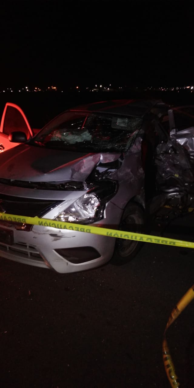 Fue a la altura del kilómetro 18 que un automóvil Nissan tipo Altima que se desplazaba a exceso de velocidad con misma trayectoria, los impactó en la parte posterior del Versa proyectándolos contra una valla metálica de protección.