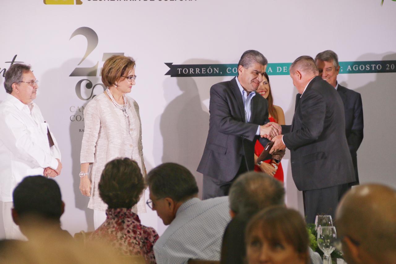 Torreón.- El gobernador Miguel Ángel Riquelme Solís entregó 54 reconocimientos a los integrantes de la Camerata de Coahuila, con motivo de su XXV Aniversario, al momento que anunció inversiones por 3.5 millones de pesos para la sede del Instituto de Música de Coahuila (IMC).