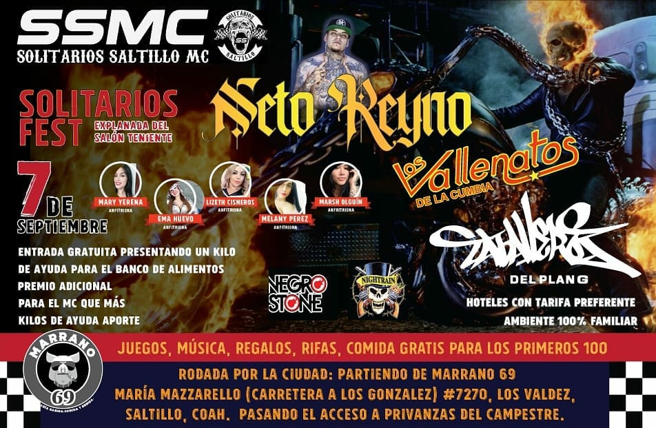 Con el objetivo de conseguir al menos 640 kilos de comida en apoyo al Banco de Alimentos de Saltillo A.C, el Moto Club Solitarios Saltillo celebrará su sexto aniversario con su «Solitarios Fest», evento especial cuyo acceso será un kilo de arroz, frijol, cereal o pasta para cocinar, por mencionar alguno de los artículos válidos a donar.