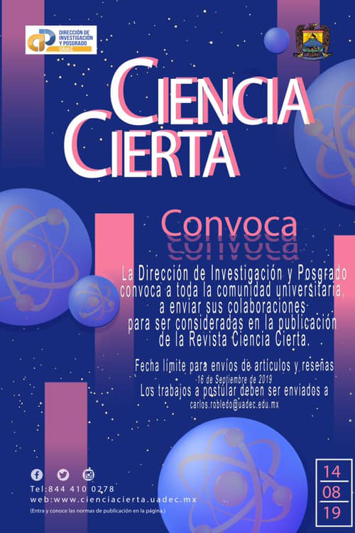 Todo el material que se reciba contará con las normas de publicación, para consultarlas ingresar a www.cienciacierta.uadec.mx/instrucciones-para-autor y www.cienciacierta.uadec.mx/documentos/NormasCC2018.pdf