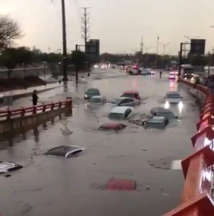 Autos quedan varados bajo el agua en un paso a desnivel en la ciudad de #Monterrey, luego de las intensas lluvias que se registraron la tarde de este sábado. pic.twitter.com/u1jSrUC8ni