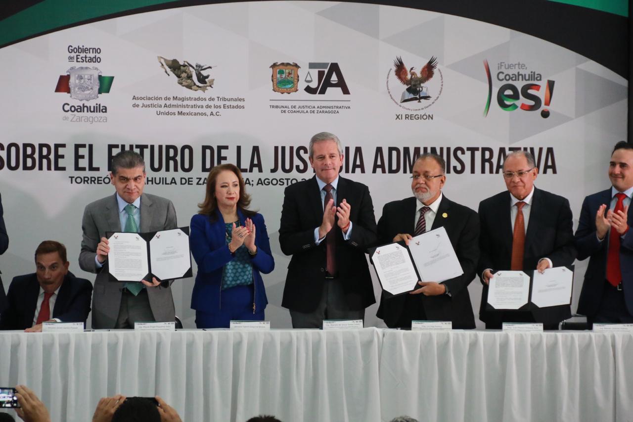 El Gobernador encabezó la ceremonia “Reflexiones Sobre el Futuro de la Justicia Administrativa”, teniendo como sede Torreón, además de la firma del Convenio de Colaboración entre magistrados, jueces de Distrito y tribunales estatales de Justicia Administrativa.