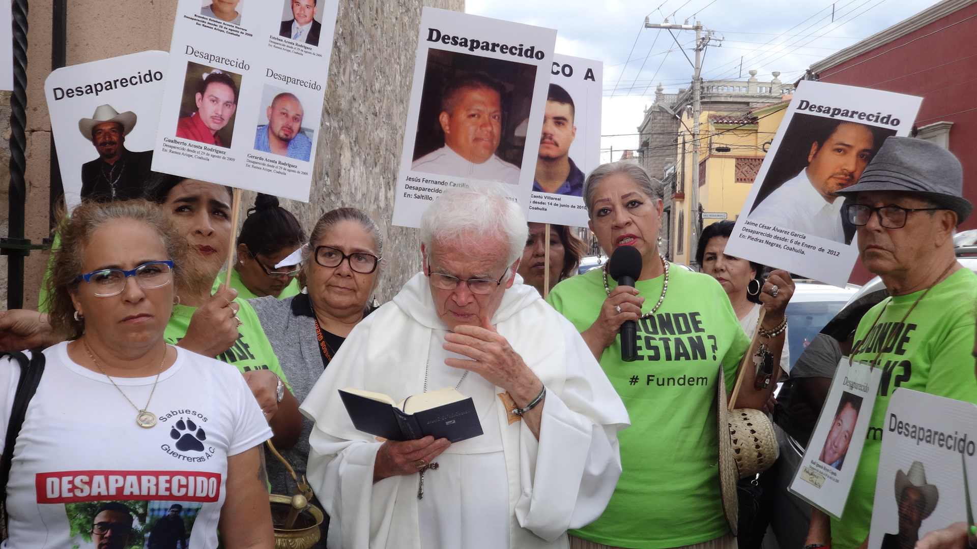 La tarde de este domingo, la exposición fotográfica «La Fuerza de las Mujeres ante las Desapariciones en México», instalada en las rejas de la Catedral de Santiago, fue inaugurada por el obispo de Saltillo, Raúl Vera López, colectivos y asociaciones de familiares de víctimas de desaparición.