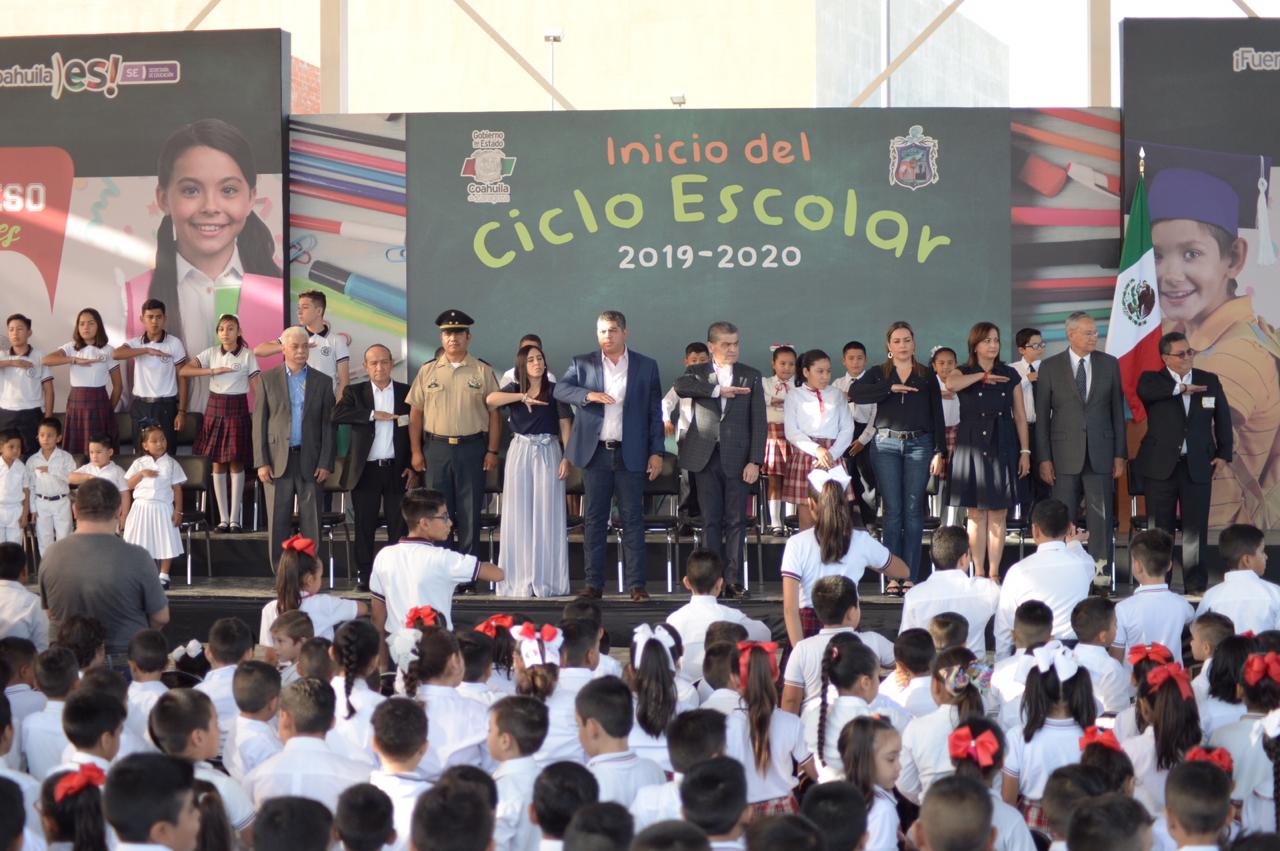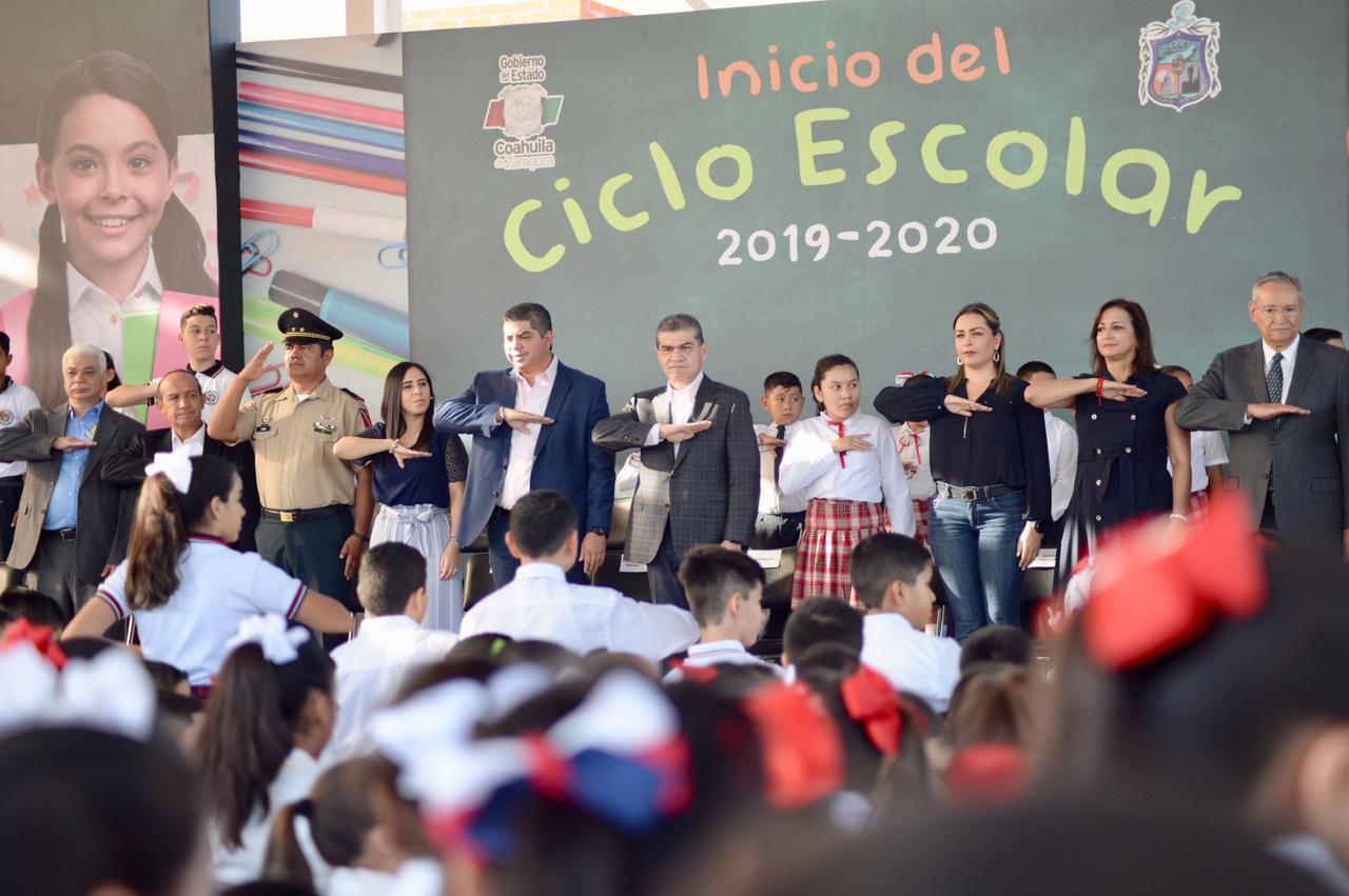 Y anunció: “Hoy inician o retornan a las aulas 618 mil alumnos de nivel básico, pertenecientes a cuatro mil 195 centros escolares. Esta cifra se suma en el sistema escolarizado en educación media y superior, y entre todos son un millón 067 mil 685 coahuilenses, es decir, más de la tercera parte de nuestra población se encuentra en preparación educativa”.