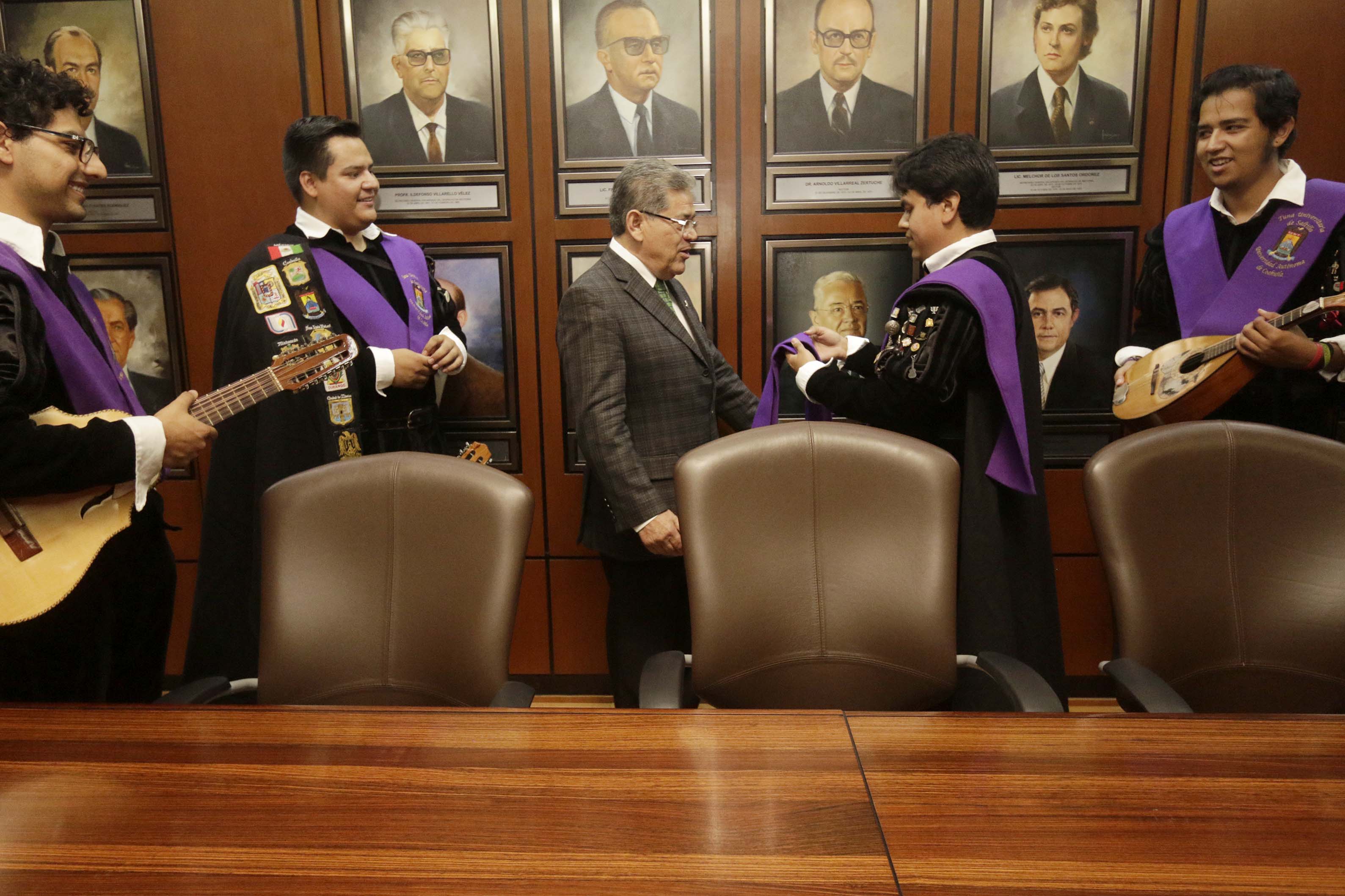 Le agradecieron el continuo apoyo para la promoción de la Tuna y de sus proyectos de vinculación con otras estudiantinas universitarias, así como órdenes de gobierno para la celebración de callejoneadas, entre los planes que le compartieron es formar parte de un Censo Mundial de Tunas y ser sede de un Certamen Internacional de Tunas.