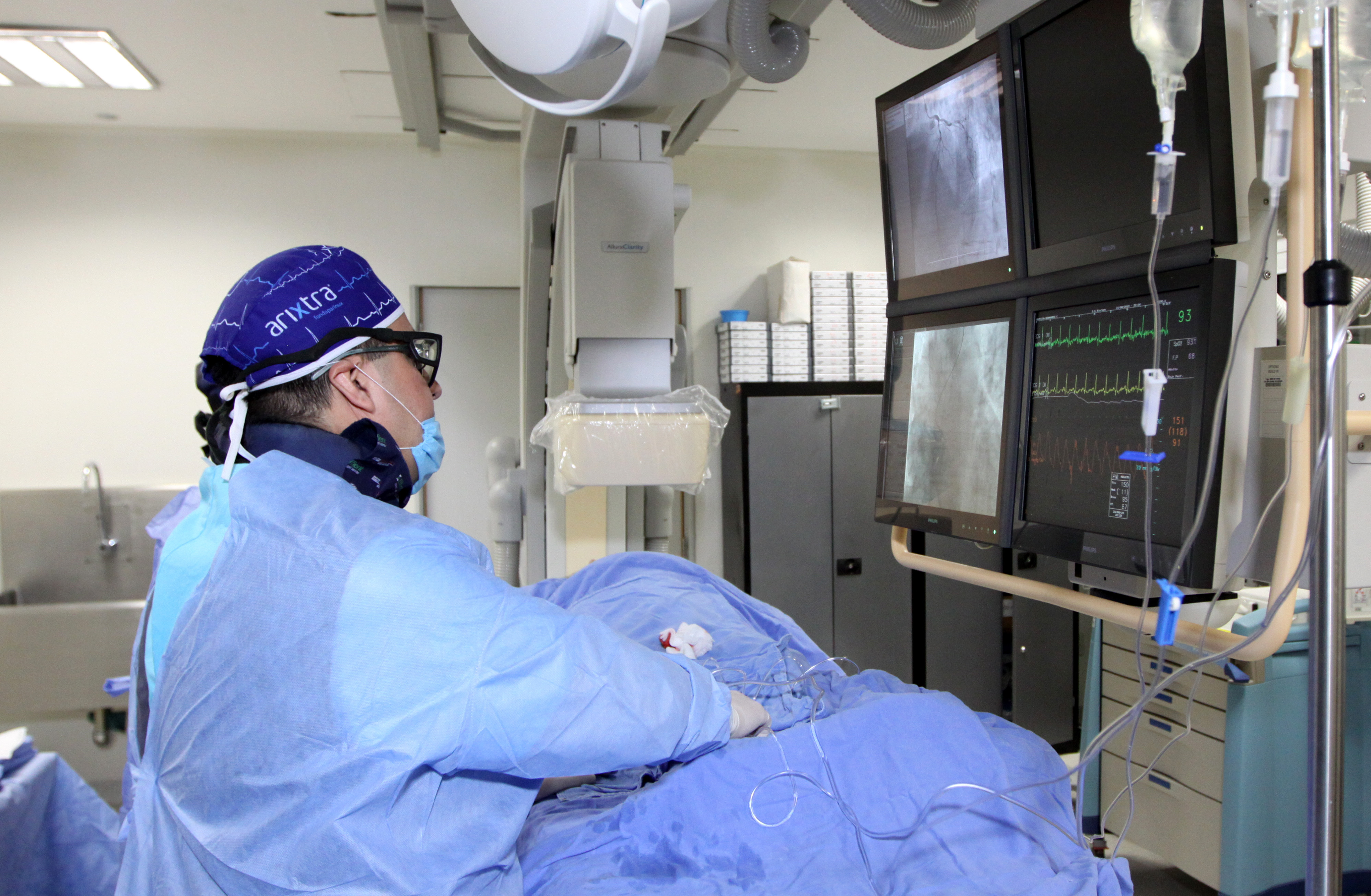 “Decidimos trabajar la arteria más tapada, que era la coronaria derecha, ese mismo día lo mandamos a su casa por la tarde y a los 15 días le destapamos la restante; afortunadamente tuvimos éxito y él ahora se encuentra muy bien”, comentó el Coordinador del Servicio de Hemodinamia.