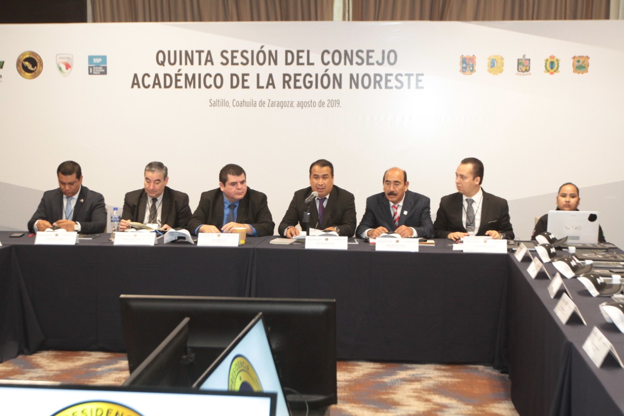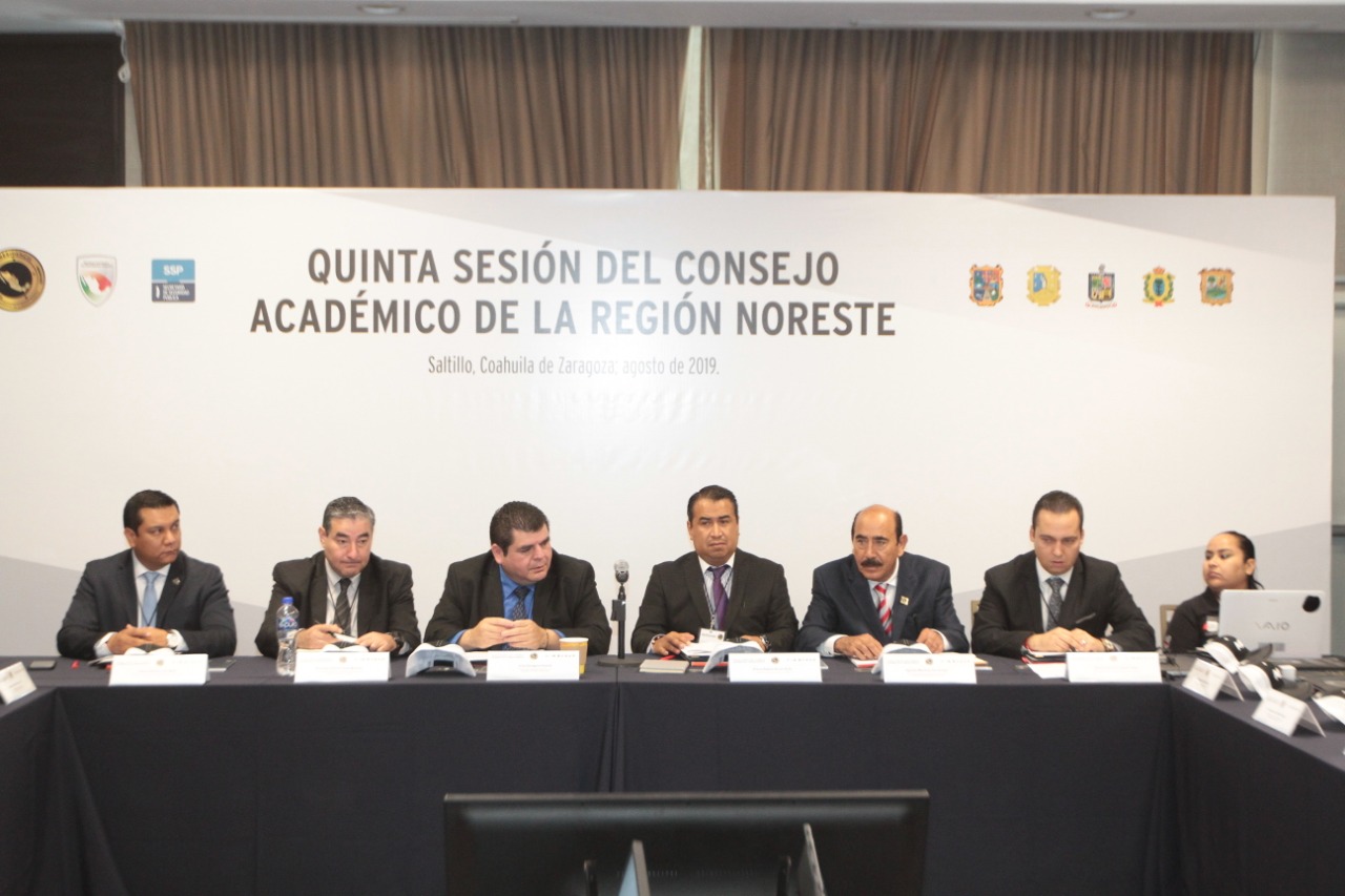 Catedráticos de Coahuila, Nuevo León, Durango, Tamaulipas y San Luis Potosí se reunieron en la capital coahuilense en la Quinta Sesión del Consejo Académico de la Región Noreste para definir criterios e intercambiar experiencias para el fortalecimiento de la preparación y profesionalización de aspirantes a integrarse a la Seguridad Pública.