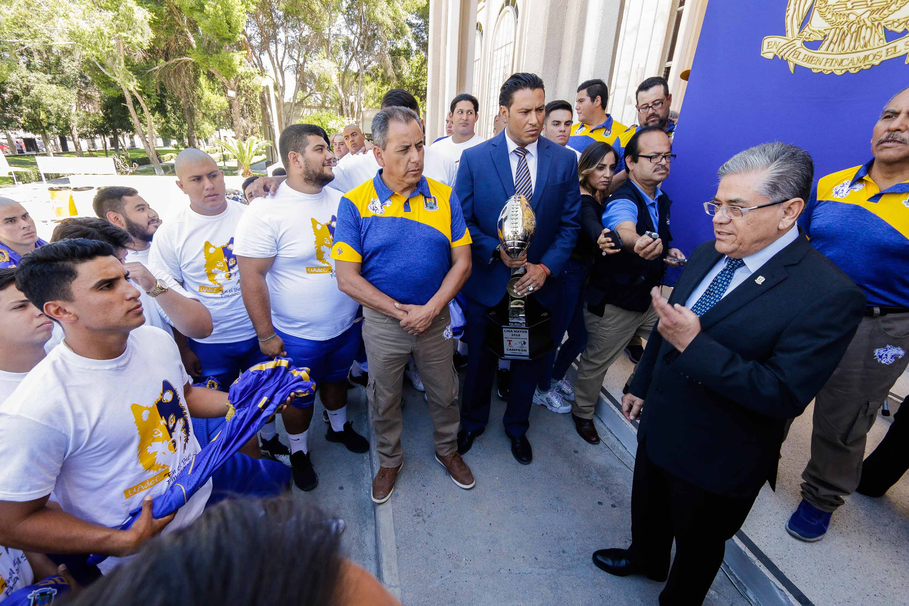 Por su parte, el equipo de la UA de C se comprometió ante el rector a dar lo mejor durante la temporada, con el firme objetivo de seguir demostrando que son el mejor equipo de la liga y obtener el octavo campeonato de la ONEFA 2019.
