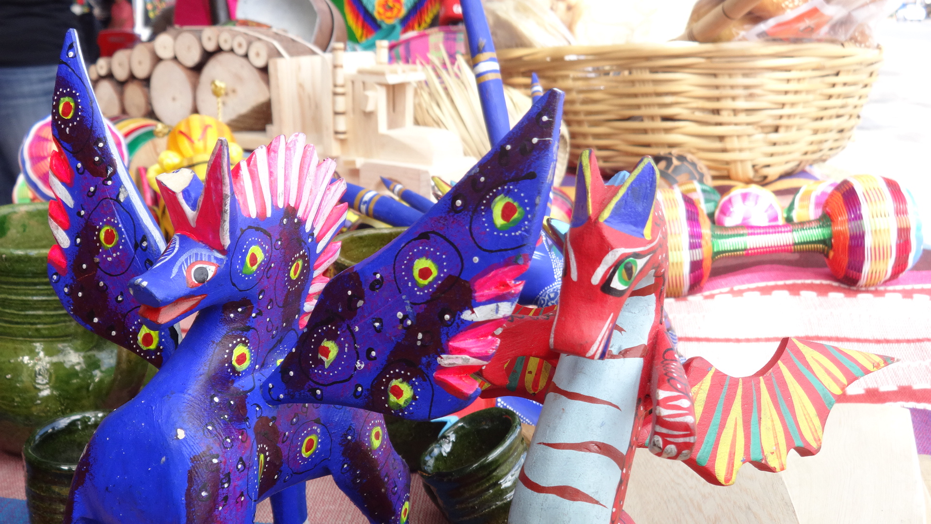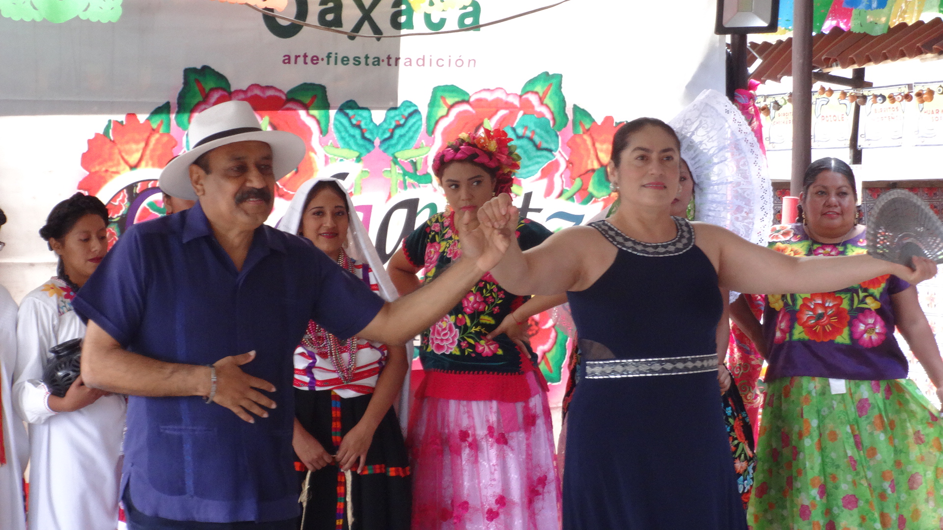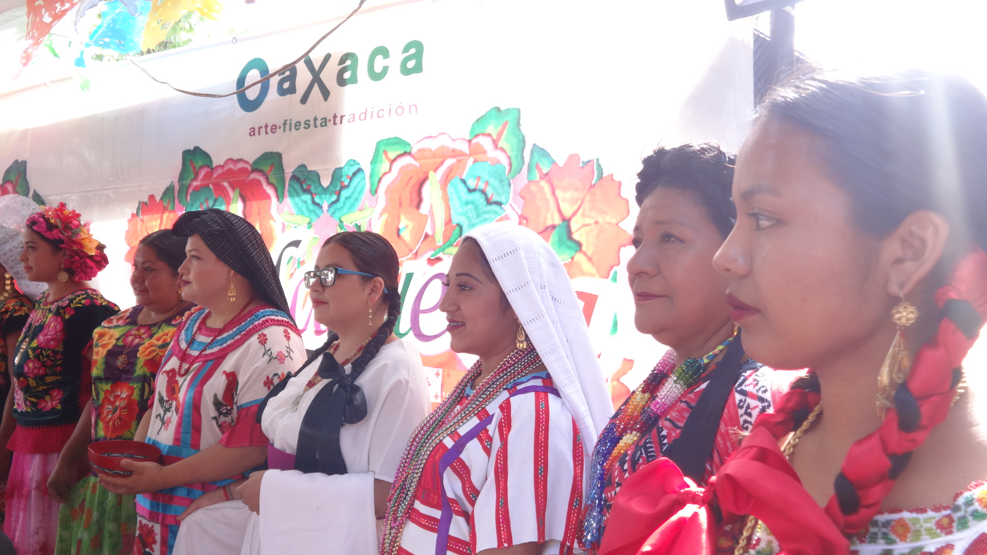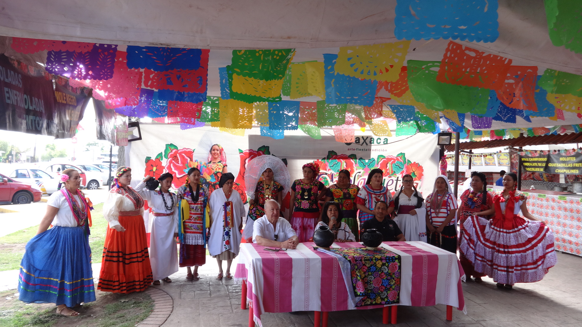 «Esto es lo que traen mis compañeros para ustedes, esta producción que se tiene en Oaxaca de la artesanía y que forma parte fundamental de la economía de nuestro estado. Están aquí varias familias de artesanos, algunos traen lo que sus familias producen allá. Estamos muy agradecidos de pueblos como ustedes que se interesan y todo ello y que nos permiten una forma digna, decorosa de sustento», Diana Velasco Leyva, coordinadora general del Grupo Cultural Oaxaca «Arte, Fiesta y Tradición».