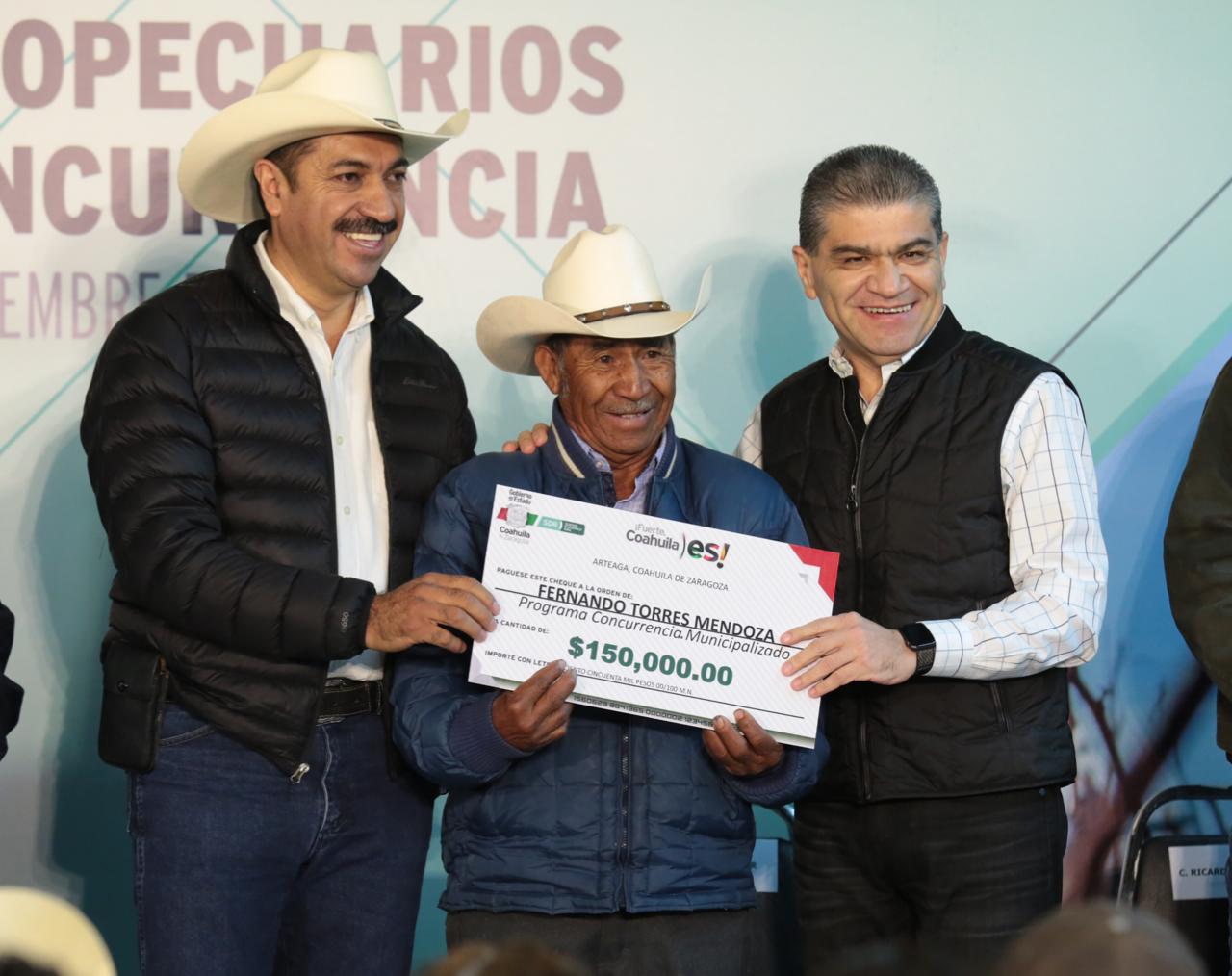 Arteaga, Coah.- En el ejido El Tunal, del municipio de Arteaga, el gobernador Miguel Ángel Riquelme Solís inició la entrega de apoyos municipalizados de Concurrencia, en los que se aplicará un monto de más de 83 millones de pesos, y además firmó el compromiso del programa “Vamos a Michas”, mismo en el que Estado y Municipio invertirán más de 54.2 millones de pesos en obras prioritarias para Arteaga.