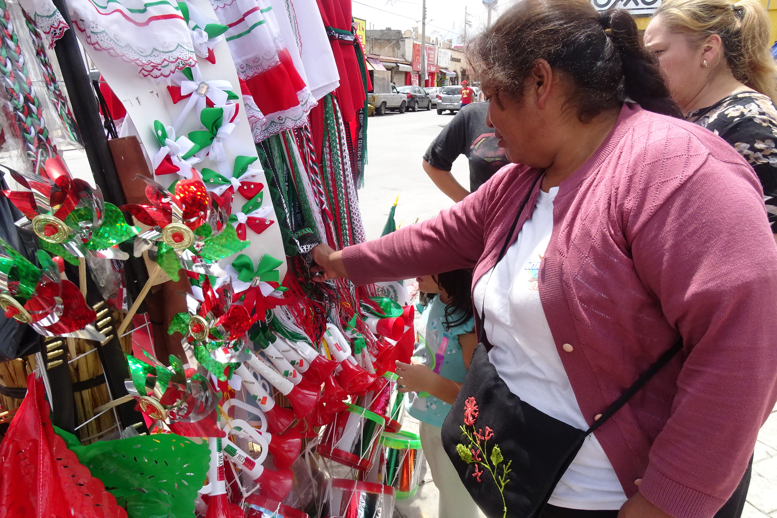 La familia Ramírez ha mantenido la tradición de vender artículos patrios cada año. Desde principios de septiembre, Cirila Ramírez y su esposo comienzan la vendimia en la Plaza Principal de Ramos Arizpe.