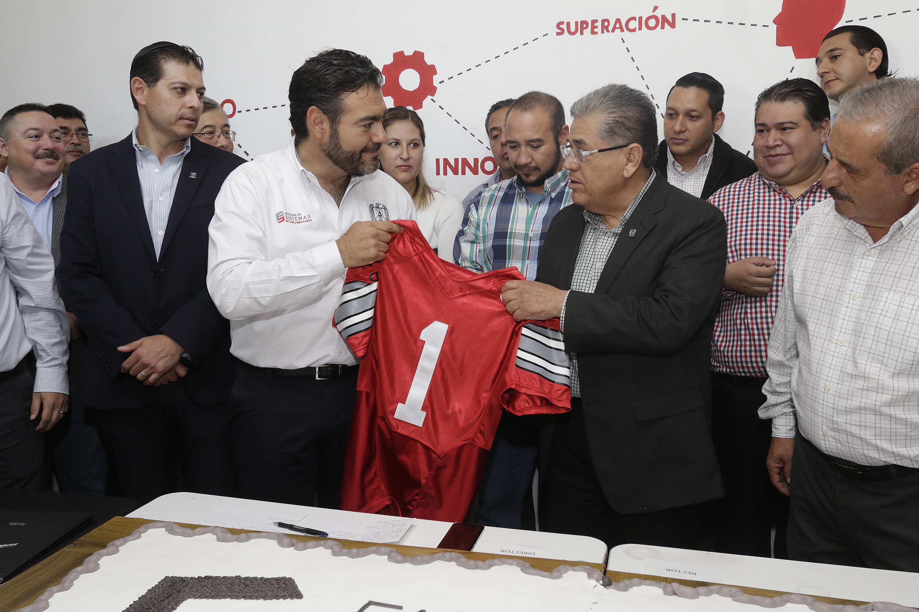 Durante la ceremonia se entregó el uniforme al equipo representativo de la Facultad de Sistemas, los “Pumas” de Fútbol Americano y obsequiaron al rector, Salvador Hernández Vélez el jersey con el número uno.