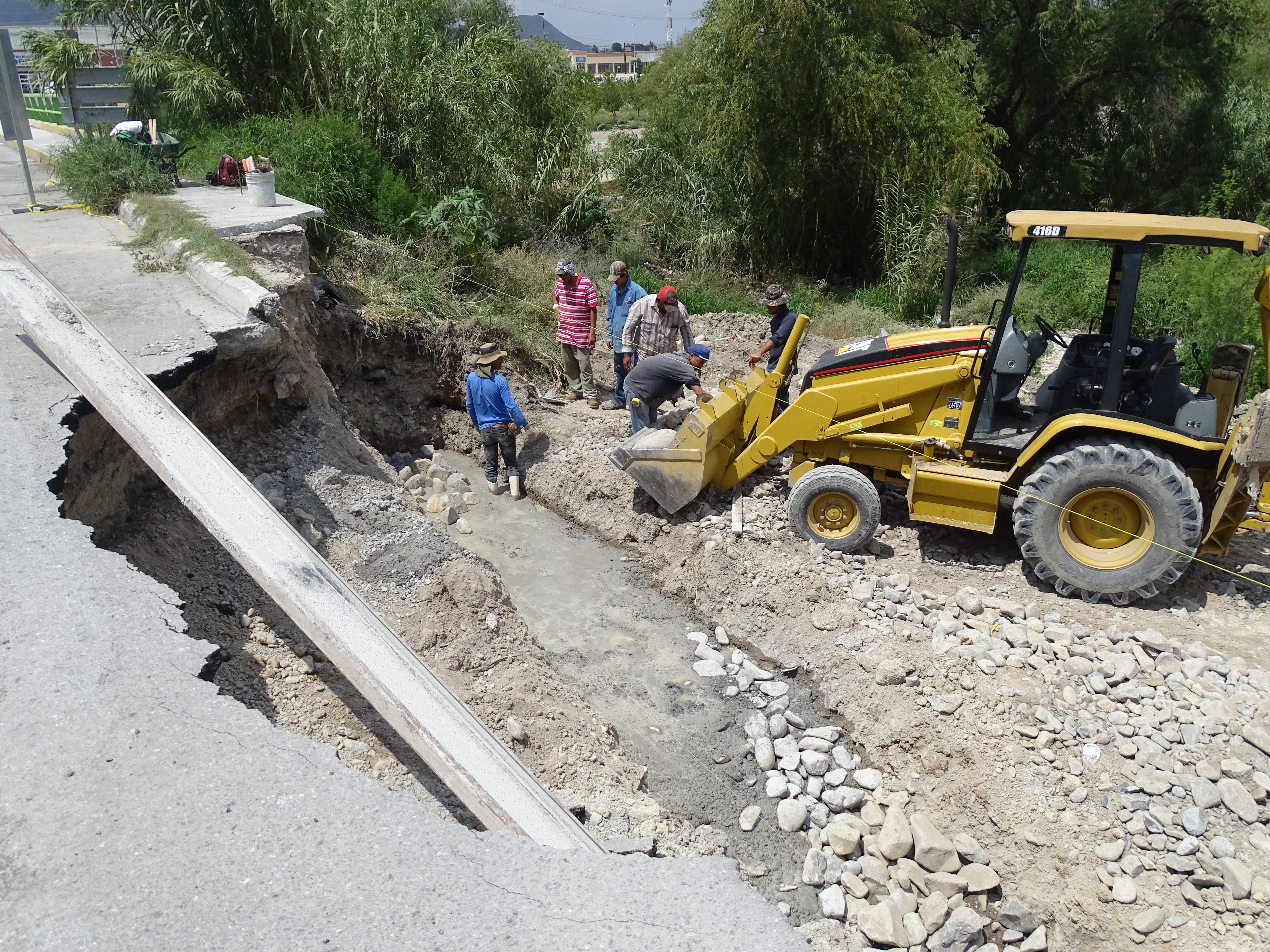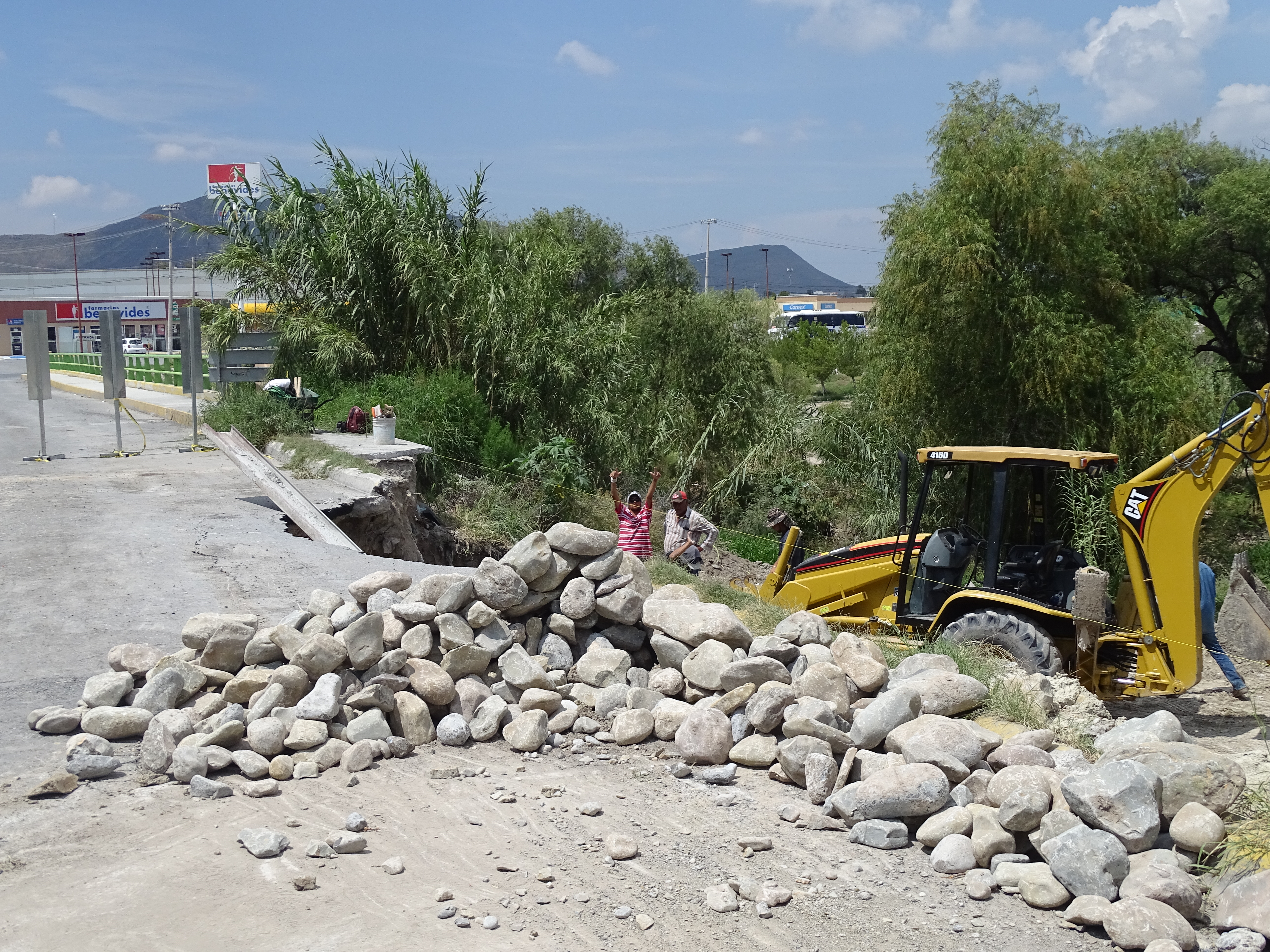Desde el pasado lunes, una cuadrilla de aproximadamente diez trabajadores de la Dirección de Obras Públicas de Ramos Arizpe se encuentra realizando labores de reconstrucción en el Puente Analco ubicado en la calle boulevard Gustavo Díaz Ordaz, ya que la lluvia causó daños en el pavimento debido a la torrente de agua que circula por este sector.