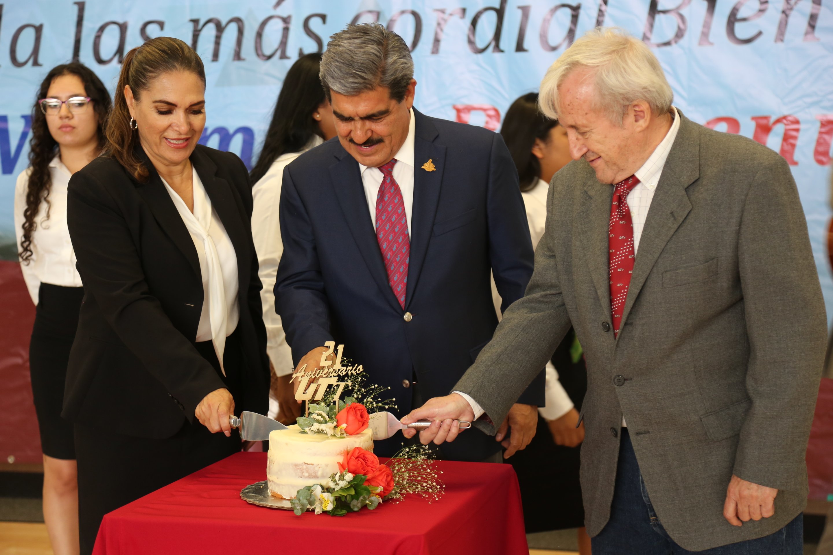 Finalmente se dio paso al tradicional corte de pastel por los 21 años de la universidad, para proceder a las presentaciones de la Rondalla y la Banda Sinfónica de la UTT, así como de las interpretaciones de Nahomi Zapata Yescas. (EL HERALDO)