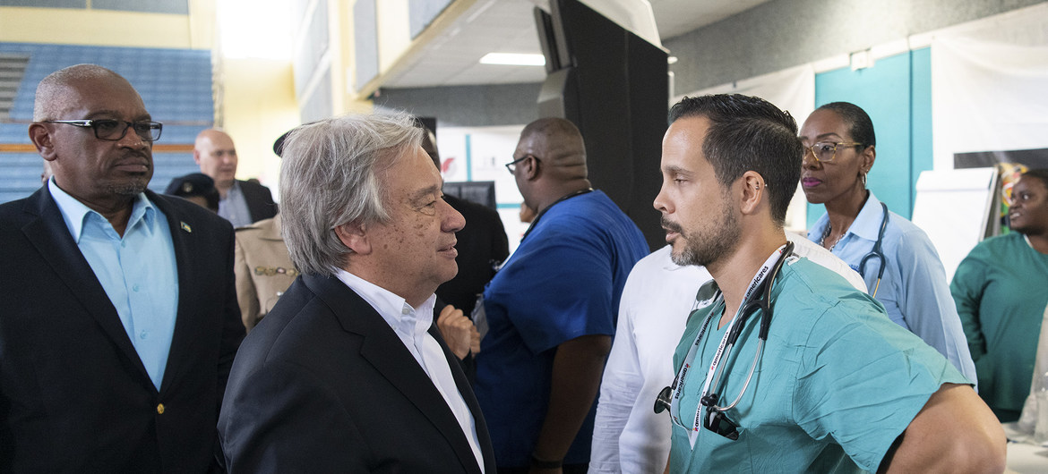 Tras reunirse con el primer ministro del país, Hubert Minnis, quien le comentó la actuación del Gobierno y las principales necesidades del país, el responsable de la Organización visitó este sábado un centro de emergencia en la isla de Ábaco, donde el 90% de las infraestructuras y de las viviendas fueron destruidas por el Dorian.