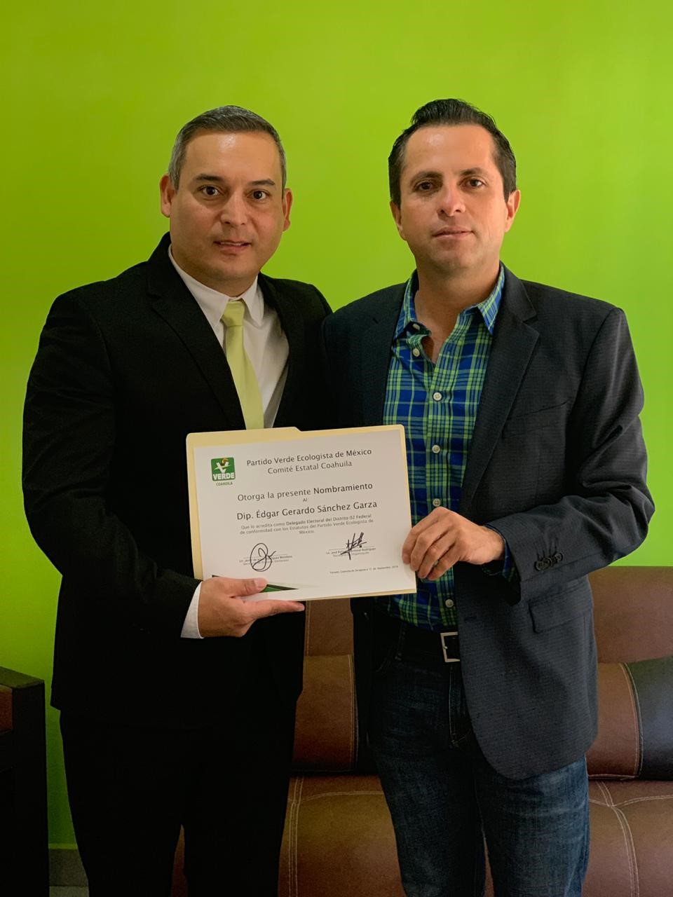 La entrega de su nombramiento estuvo a cargo del Secretario de Organización Refugio Sandoval Rodríguez el cual comentó: “me da mucho gusto que mi amigo Edgar se haya unido al Verde con nosotros, no todos los días figuras de semejante talla se nos unen, estoy seguro que sabrá dar buenos resultados a los Coahuilenses ya que me consta que es una persona comprometida con su municipio y su distrito trabajando en conjunto con todos los que integramos el Partido Verde.”