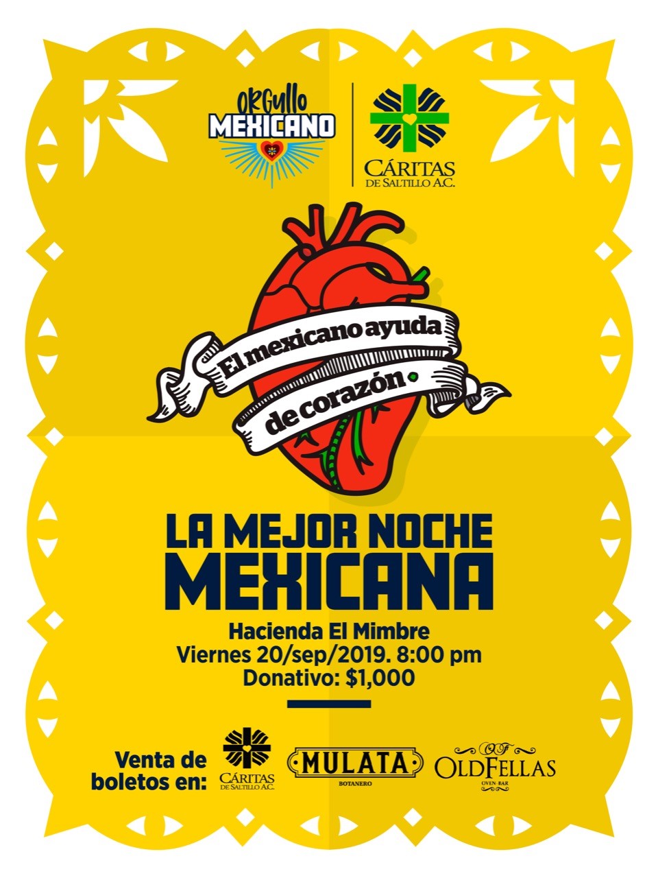 Este viernes a partir de las 8:00 de la noche en Hacienda El Mimbre, tendrá lugar el evento denominado “Orgullo Mexicano”, que, de acuerdo con sus organizadores, será la mejor noche mexicana que hayan vivido los asistentes a esta actividad benéfica, cuyo propósito es apoyar los programas asistenciales de Cáritas de Saltillo.
