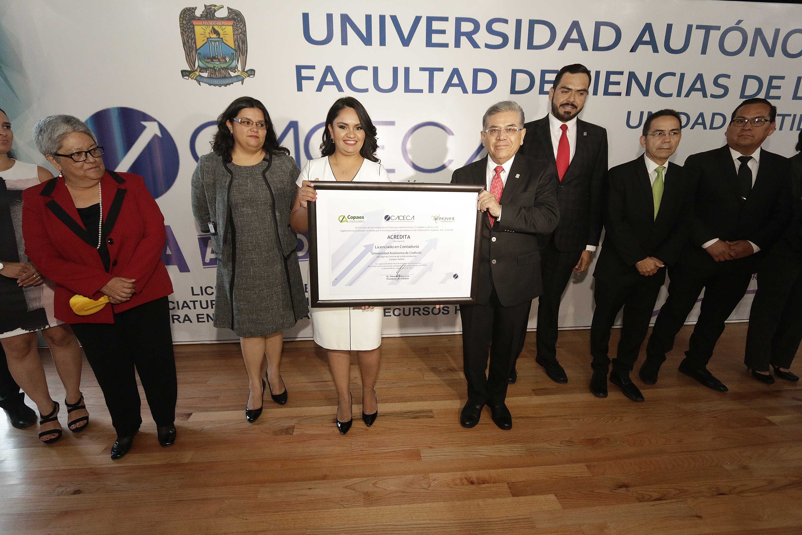 Por su parte, el secretario académico de CACECA, Humberto Flores Rocha, felicitó a la Universidad Autónoma de Coahuila, así como a la Facultad de Ciencias de la Administración, por haber obtenido las acreditaciones de las carreras de Licenciado en Administración de Empresas, Licenciado en Administración de Recursos Humanos y la Licenciado en Contaduría.