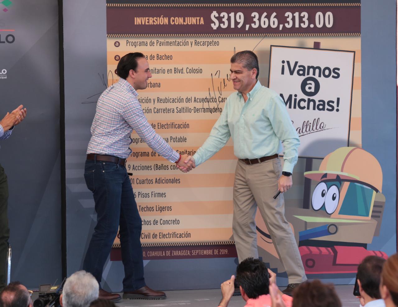 Con una inversión de 319 millones de pesos para obras de pavimentación, bacheo, electrificación, drenaje, imagen urbana, agua potable, cuartos adicionales, techos y pisos, el gobernador Miguel Ángel Riquelme Solís dio el arranque oficial del programa “Vamos a Michas” en Saltillo.