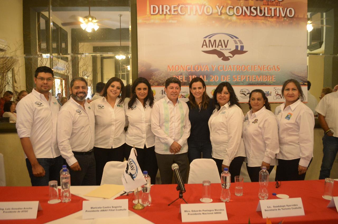 Cuatro Ciénegas, Coah.- el estado se prepara para la sede de la convención nacional de AMAV Coahuila 2020, y este jueves revisó detalles en la sesión del consejo directivo de la asociación, que presidió la secretaria de turismo y desarrollo de pueblos mágicos, Guadalupe Oyervides Valdez, y el presidente nacional del organismo, Eduardo Paniagua Morales.