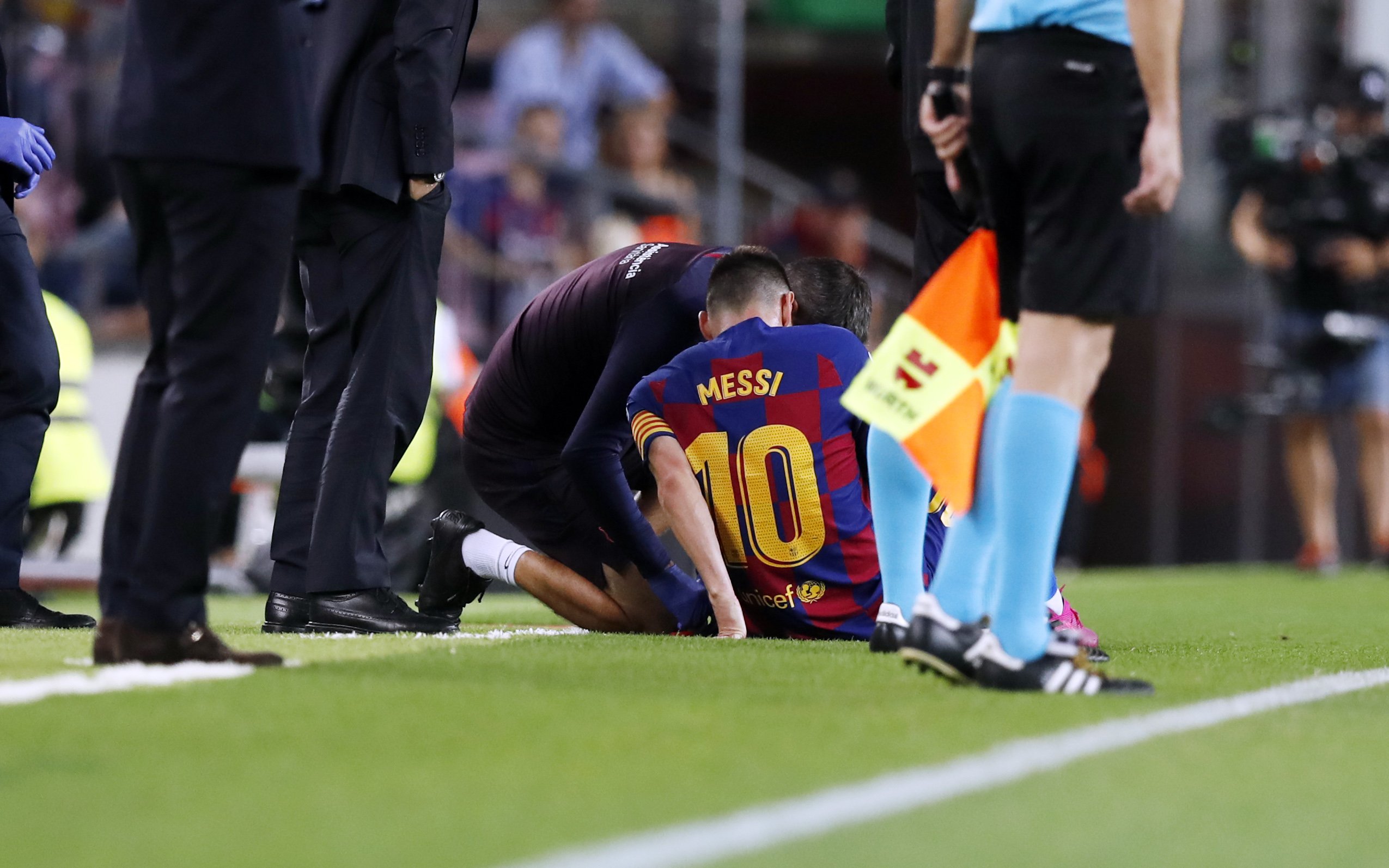 El astro argentino Lionel Messi, aquejado de molestias en el muslo izquierdo, fue sustituido por Ousmane Dembélé al descanso del encuentro liguero celebrado en el Camp NOU.
