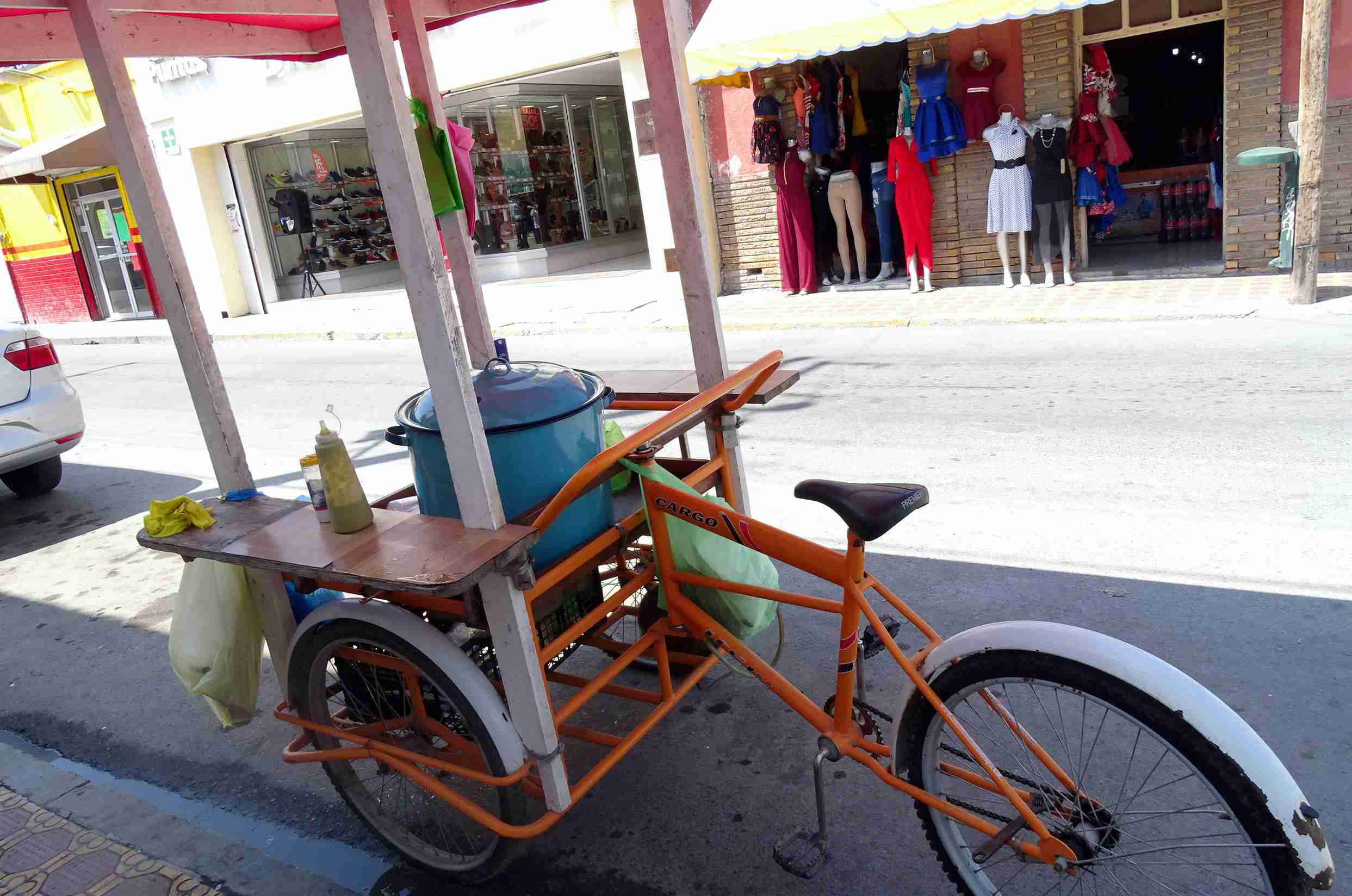 Desde temprana hora, doña Patricia Gómez despierta para iniciar un día más. Se alista para salir a trabajar y a las 9:00 de la mañana ella instala su triciclo que utiliza para transportar los tacos al vapor que venderá durante su jornada en la calle Morelos del centro de la ciudad.