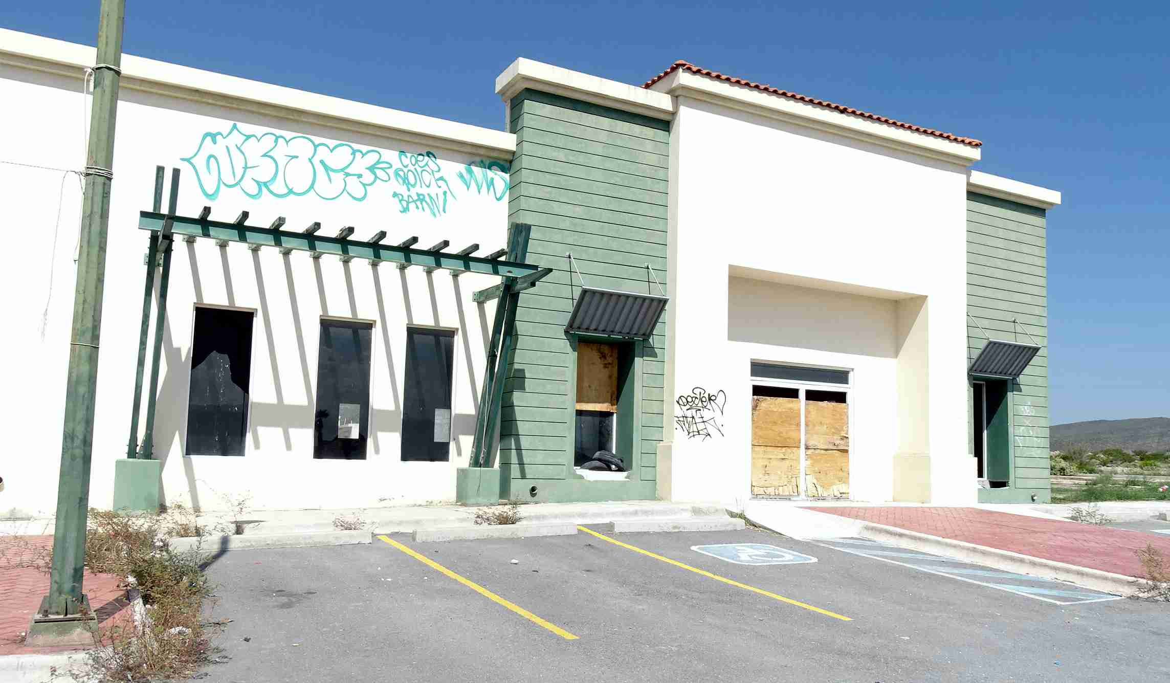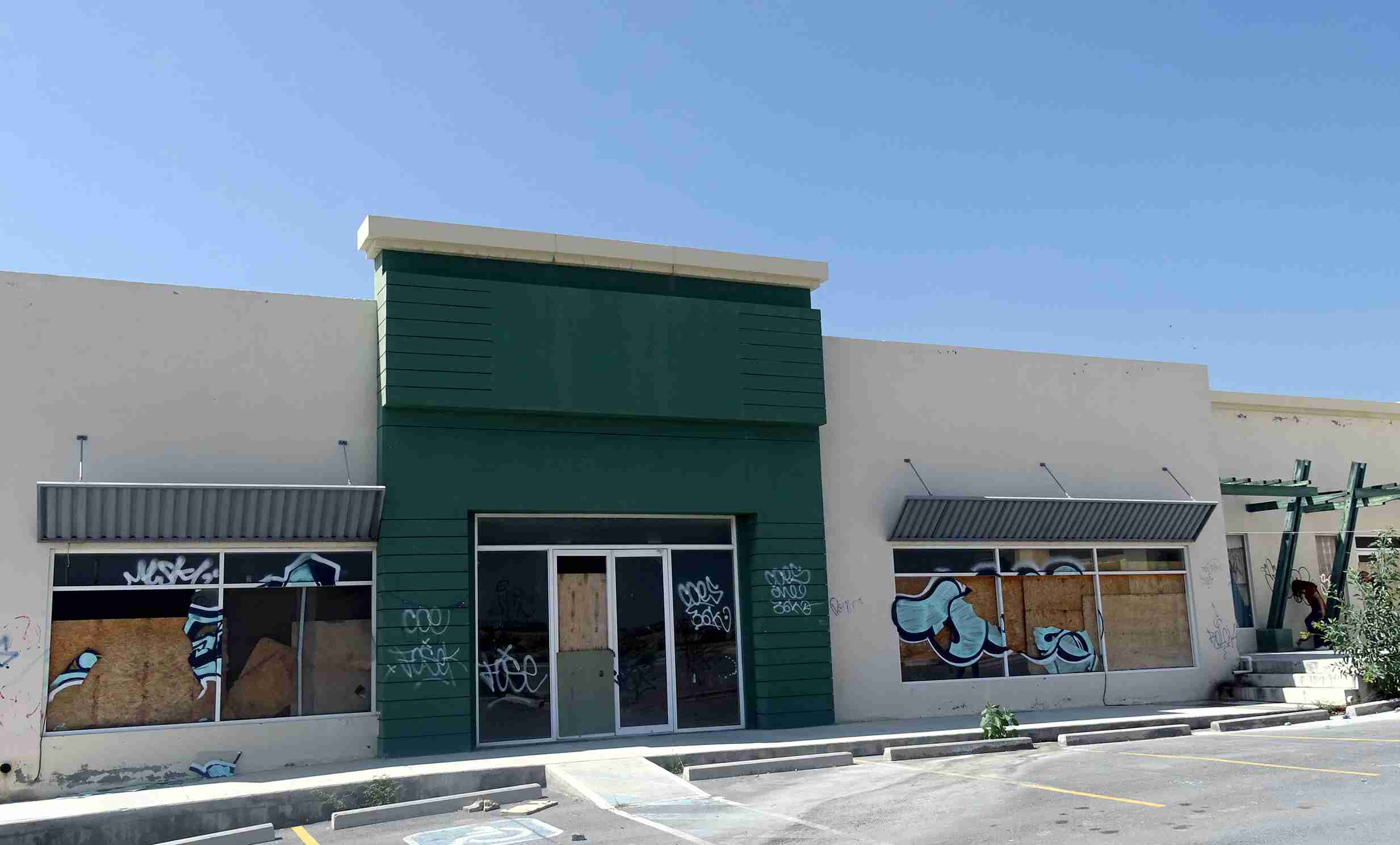 Lo que un día fue construido y destinado con el objetivo de ampliar la oferta comercial en el sector poniente de Ramos Arizpe, ahora luce en completo abandono. Afuera de la colonia Urbi Villa, se ubica una plaza comercial vandalizada y víctima del tiempo que hasta el momento no ha sido ocupada por ningún negocio.