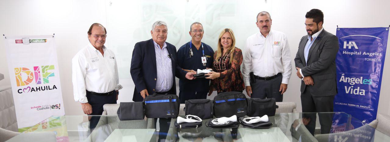 En esta entrega estuvieron también presentes el Jefe de la Jurisdicción Sanitaria No. 6, César del Bosque Garza; Ernesto Reyes Herrera, director ejecutivo del Hospital Ángeles, de Torreón, y Margarito Nava Martínez, presidente del Club Rotario Torreón. (EL HERALDO)