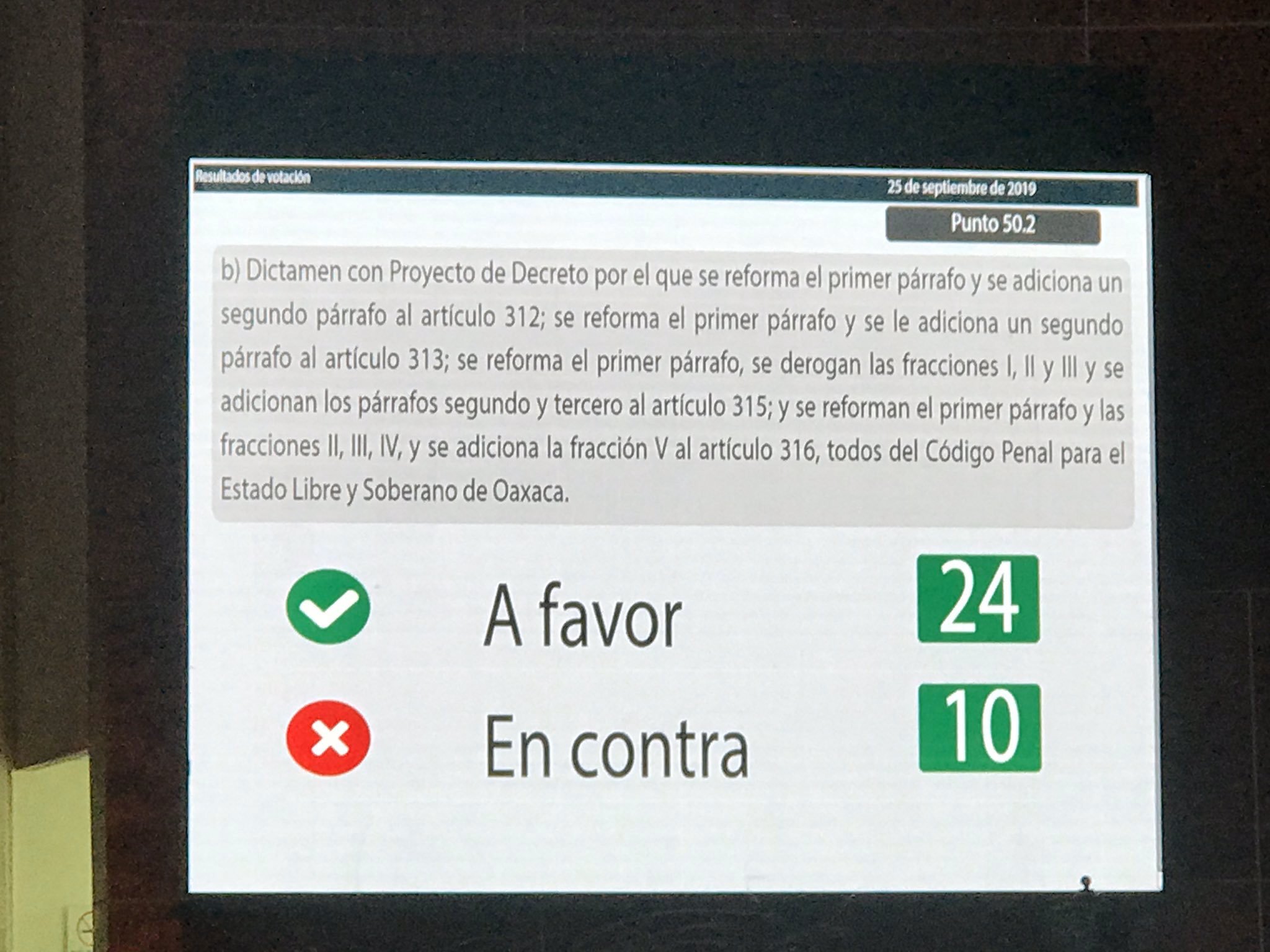 El Congreso de Oaxaca aprobó, en lo general y lo particular, este miércoles la iniciativa para reformar la Ley local y el Código Penal, a fin de despenalizar el aborto antes de las 12 semanas de gestación.