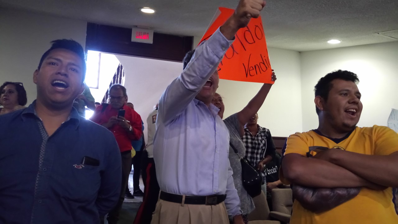 Luego de que el presidente de la Mesa Directiva, Jaime Bueno Zertuche, terminó de dar lectura a la declaratoria como diputado independiente de Benito Ramírez, para formar la fracción parlamentaria “Venustiano Carranza Garza”, misma que habrá de integrarse a la Junta de Gobierno, los ciudadanos encabezados por una persona, de nombre Jorge Enrique González, sacaron a relucir sendas pancartas y a gritar descalificativos contra el legislador.