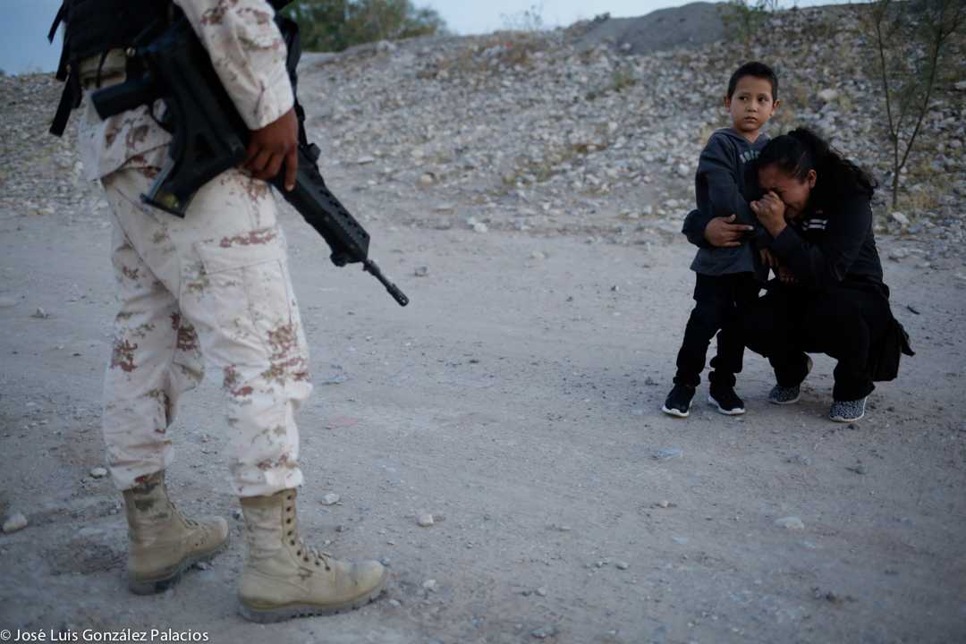 – El primer lugar, con un premio de 100 mil pesos, fue para el fotógrafo José Luis González Palacios, de Ciudad Juárez, Chihuahua. “Sueño frustrado”, retrata cómo la migrante guatemalteca Ledy Pérez abraza a su hijo Anthony, mientras reza para pedirle a un miembro de la Guardia Nacional mexicana que les permita cruzar a Estados Unidos.