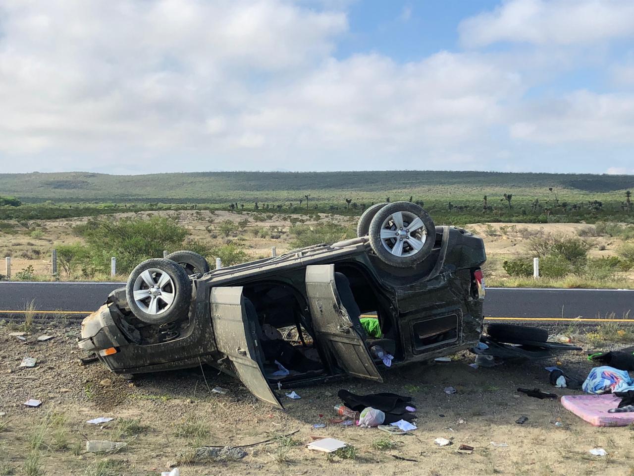 El otro percance se suscitó sobre el kilómetro 34 de la carretera a Torreón en donde una camioneta Jeep Patriot con placas ZAY3A del estado de Yucatán abandonó la carpeta asfáltica y volcó.