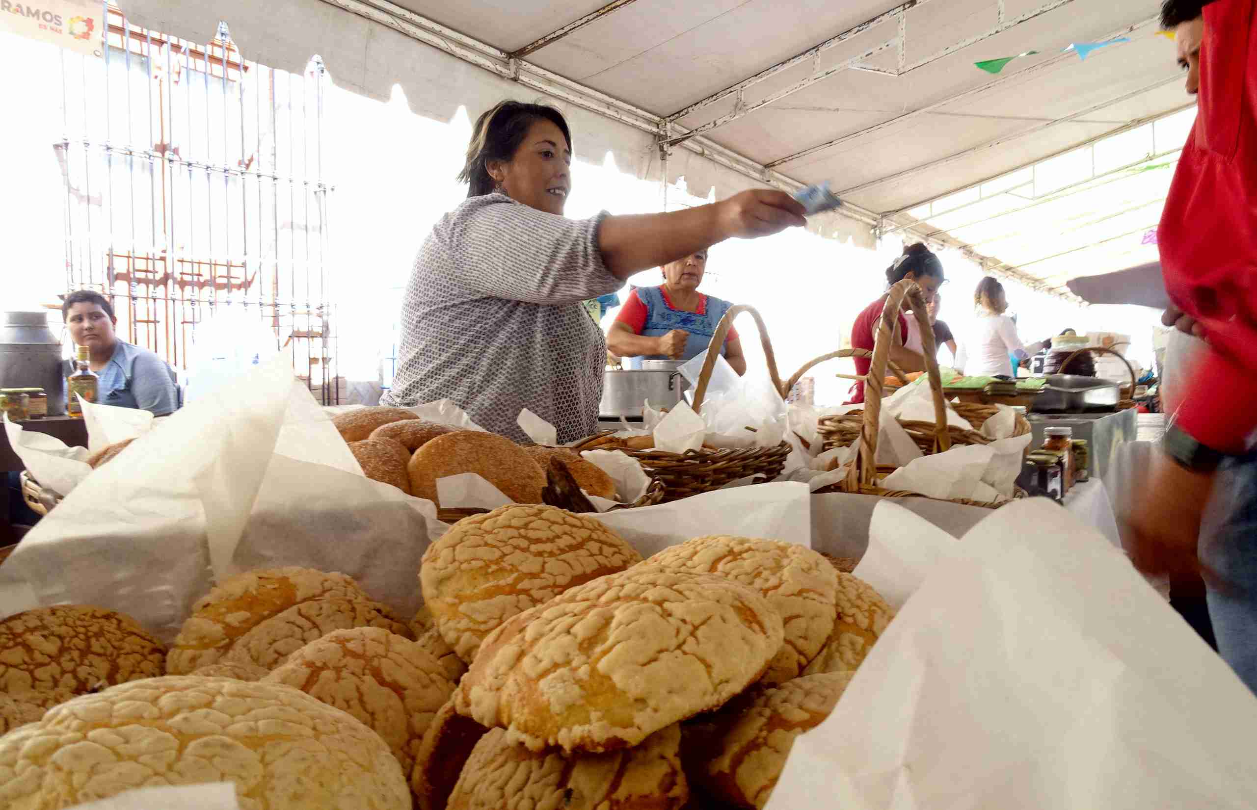 María de Los Ángeles González del Bosque, propietaria de la panadería Tradicional del Bosque, participó con la venta de pan de pulque, molletes, chorreadas, empanadas, galletas, conservas y conchas que se han convertido en una tradición para los ramosarizpenses.